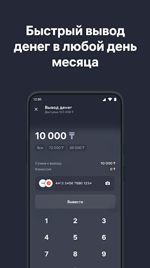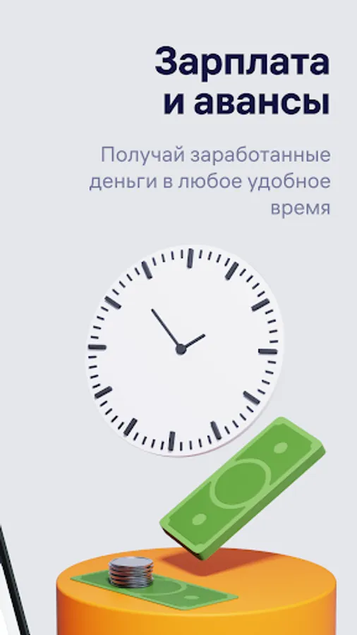Salary is a product that allows employees to track their earned funds and receive them at any convenient time. Funds can be instantly transferred to any bank card. This product is available for use by employees of companies that are our partners.