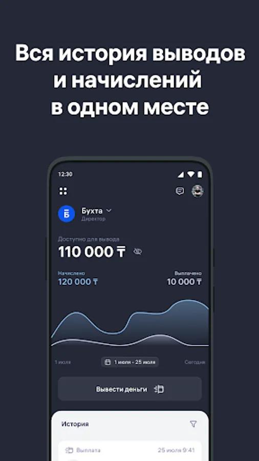 Payroll is a product that allows employees to track their earned funds and receive them at any convenient time. Funds can be instantly withdrawn to any bank card. This product is available for use by employees of companies that are our partners.