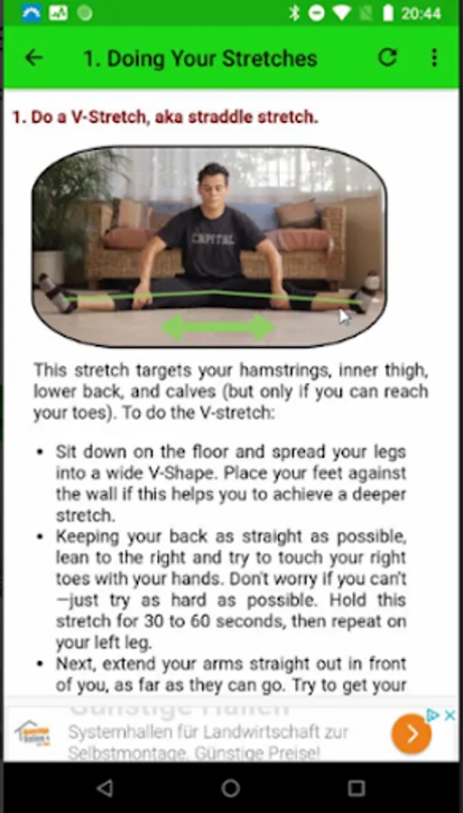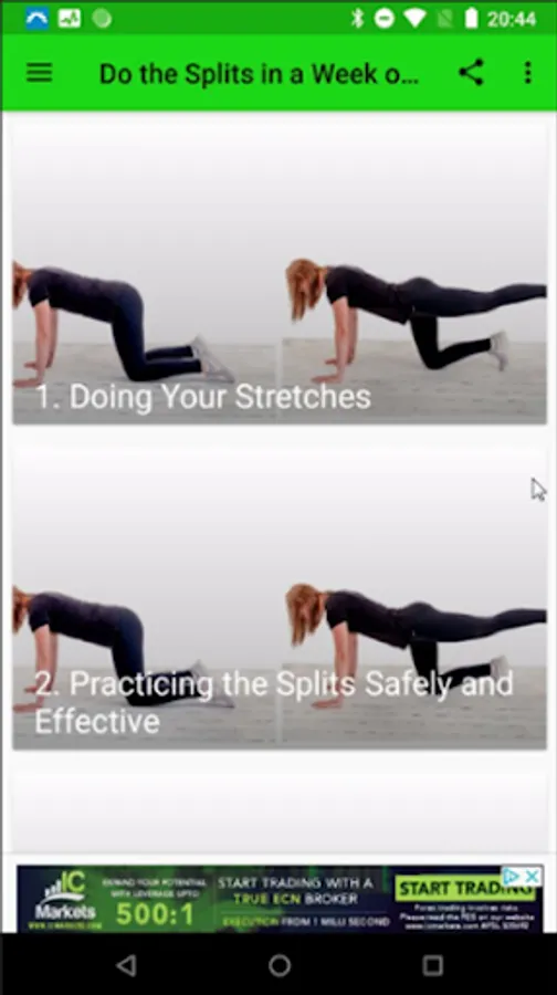 Now this is possible with the Stretches for middle splits section. For you in the Training section to sit on the splits are distributed training. Do not be afraid to sit on the splits is real. How to do the splits fast now there is no point in looking for the method, it is everything in our application. For couch potatoes have information do the splits in 30 days at home. Stretching and splitting exercises are the best tips for stretching and effective exercises.