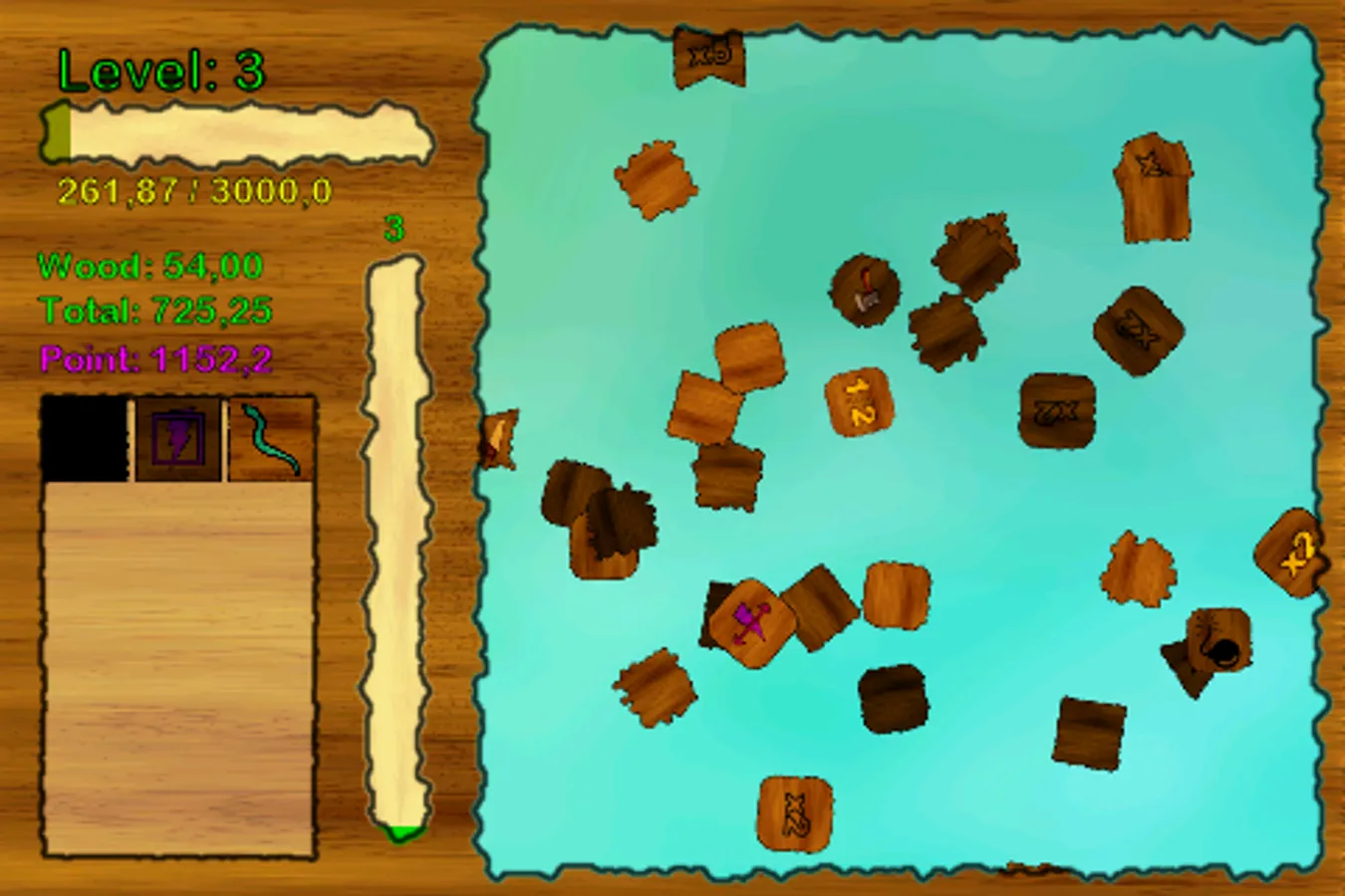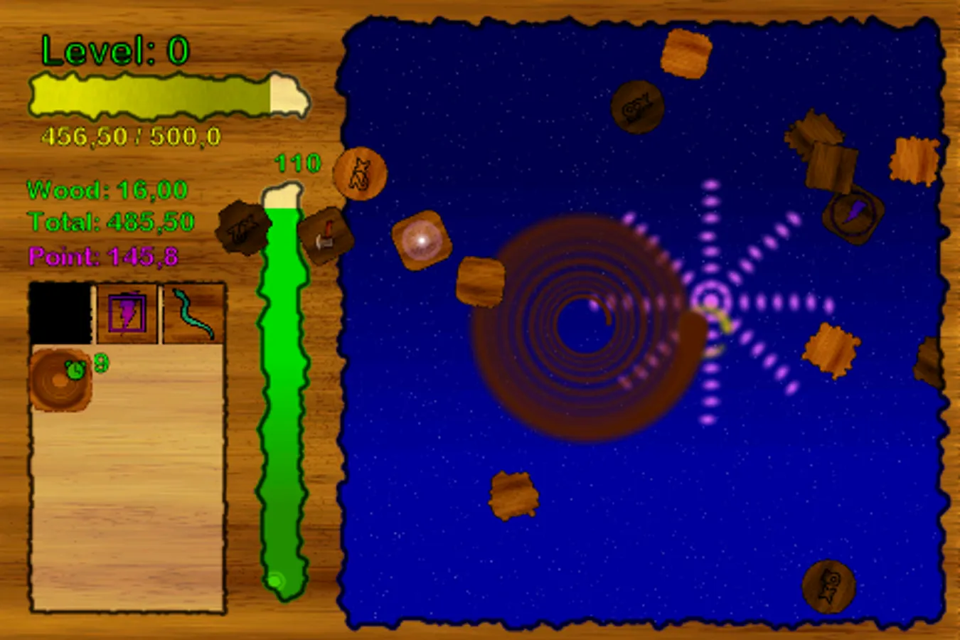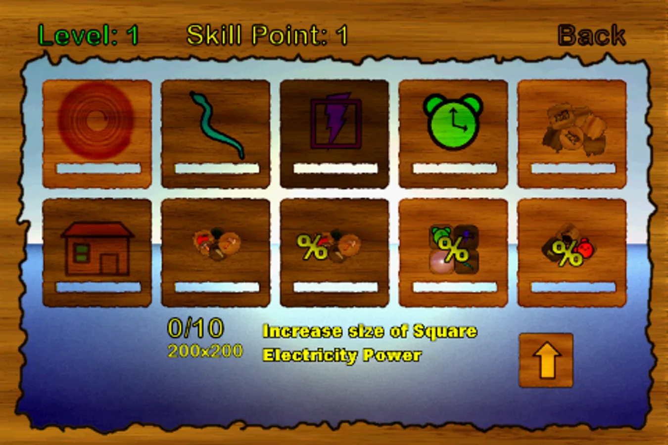 You must collect woods for build your house. You can use your powers for collecting more woods. And you will gain experience. Then upgrade your level and skills. You can collect more woods and gain more experience with your upgraded skills and powers.
