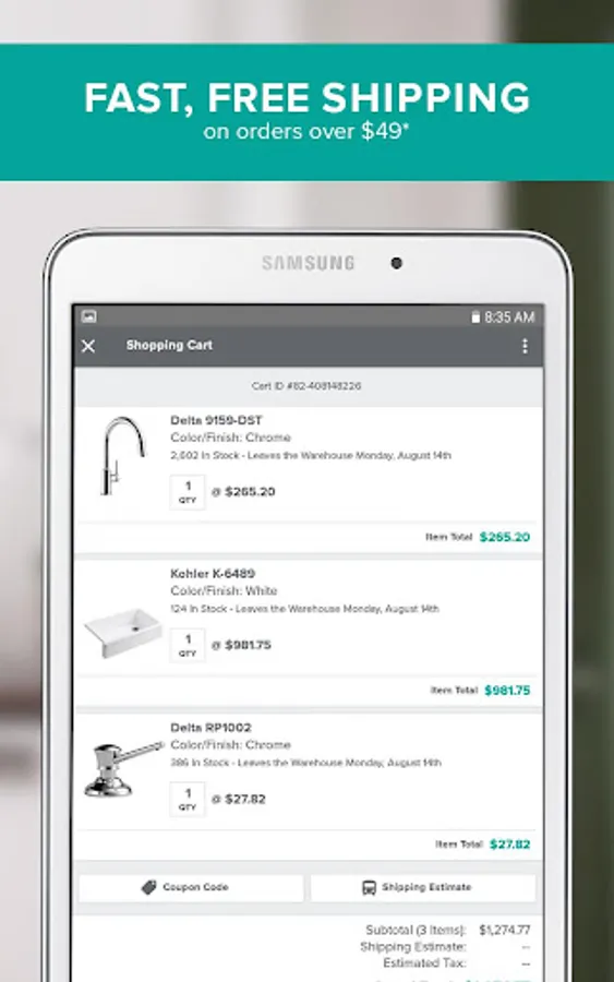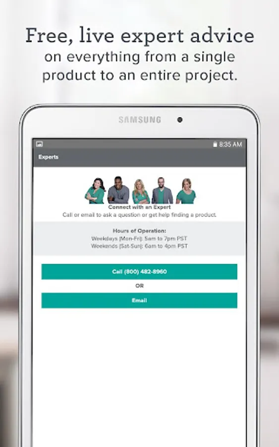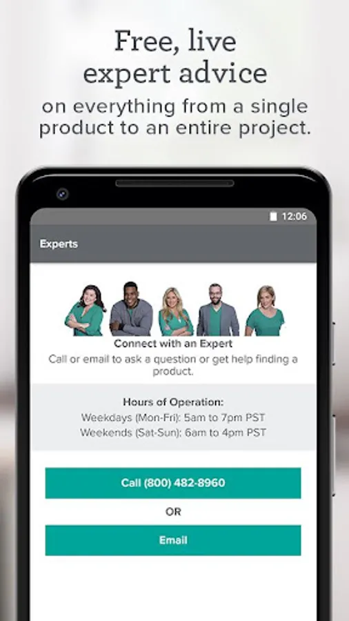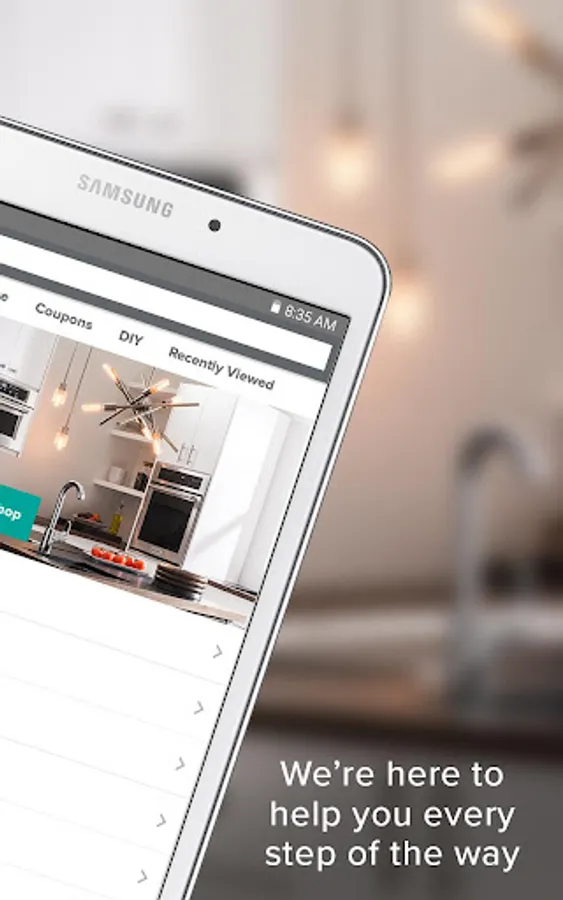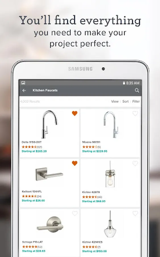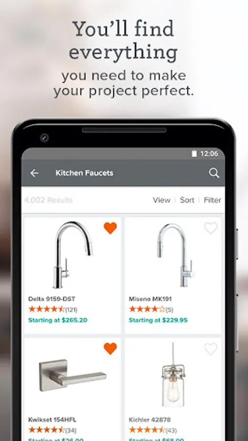 Organized to make shopping easy, the app lets you sort by room or department. Quickly find exactly what you’re looking for by selecting Kitchen, Bathroom, Plumbing Fixtures, Lighting, Fans, Hardware, Decor, Appliances, Heating & Air (HVAC), Flooring, Outdoor, Designer Home, Smart Home, or Commercial Products.