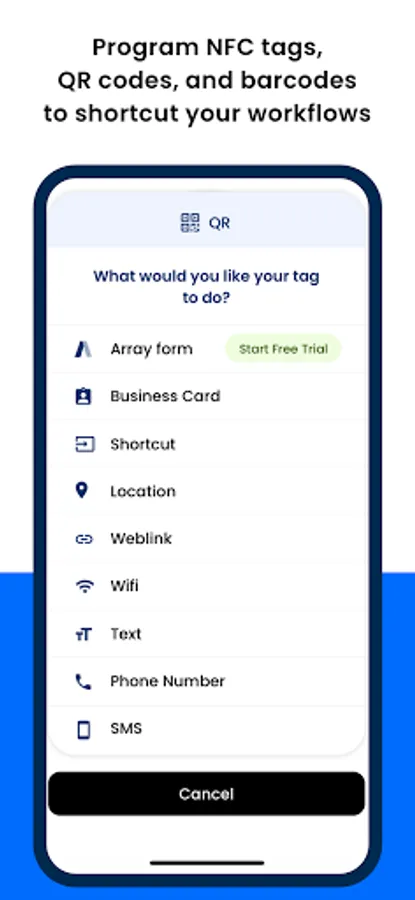 The Scan app, powered by Array, can quickly read and write to any NFC tag, QR code or barcode via a user-friendly interface.