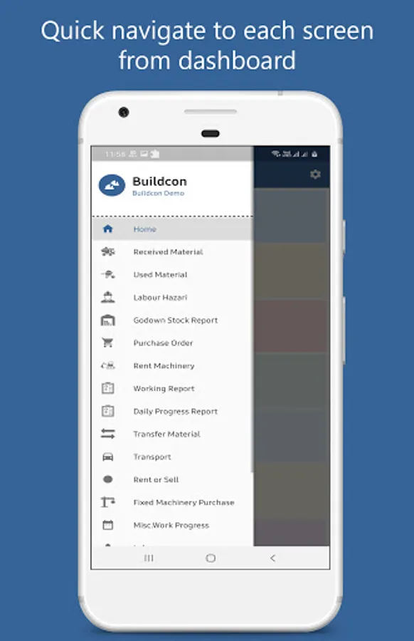 Get digitized your data from your construction site Engineer/supervisors using our easiest way to operate the mobile app. Your site has got a weak network? Don't worry, the report can be sent offline and synced on active network availability. With Buildcon, company executives get daily and real-time reports from their construction sites and get actionable insights to monitor and manage their construction projects better.