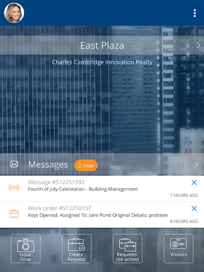 The Hive by Building Engines enables building tenants to easily manage all building issues and tasks. Stay on top of important updates from your building manager. Quickly snap a picture of a problem and submit a work order, pre-register visitors, rate your experience, and more.