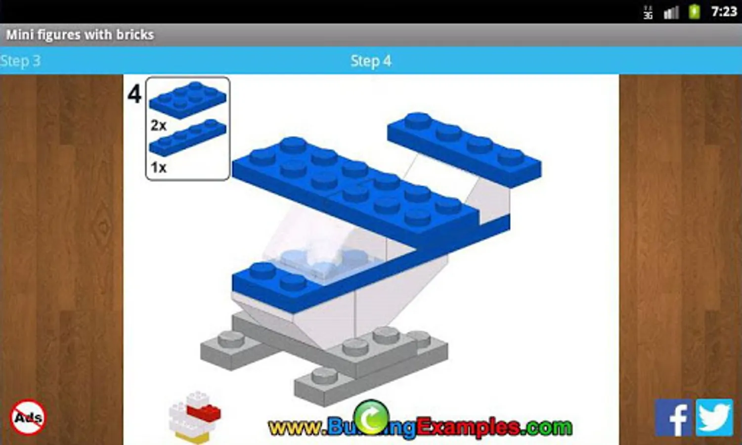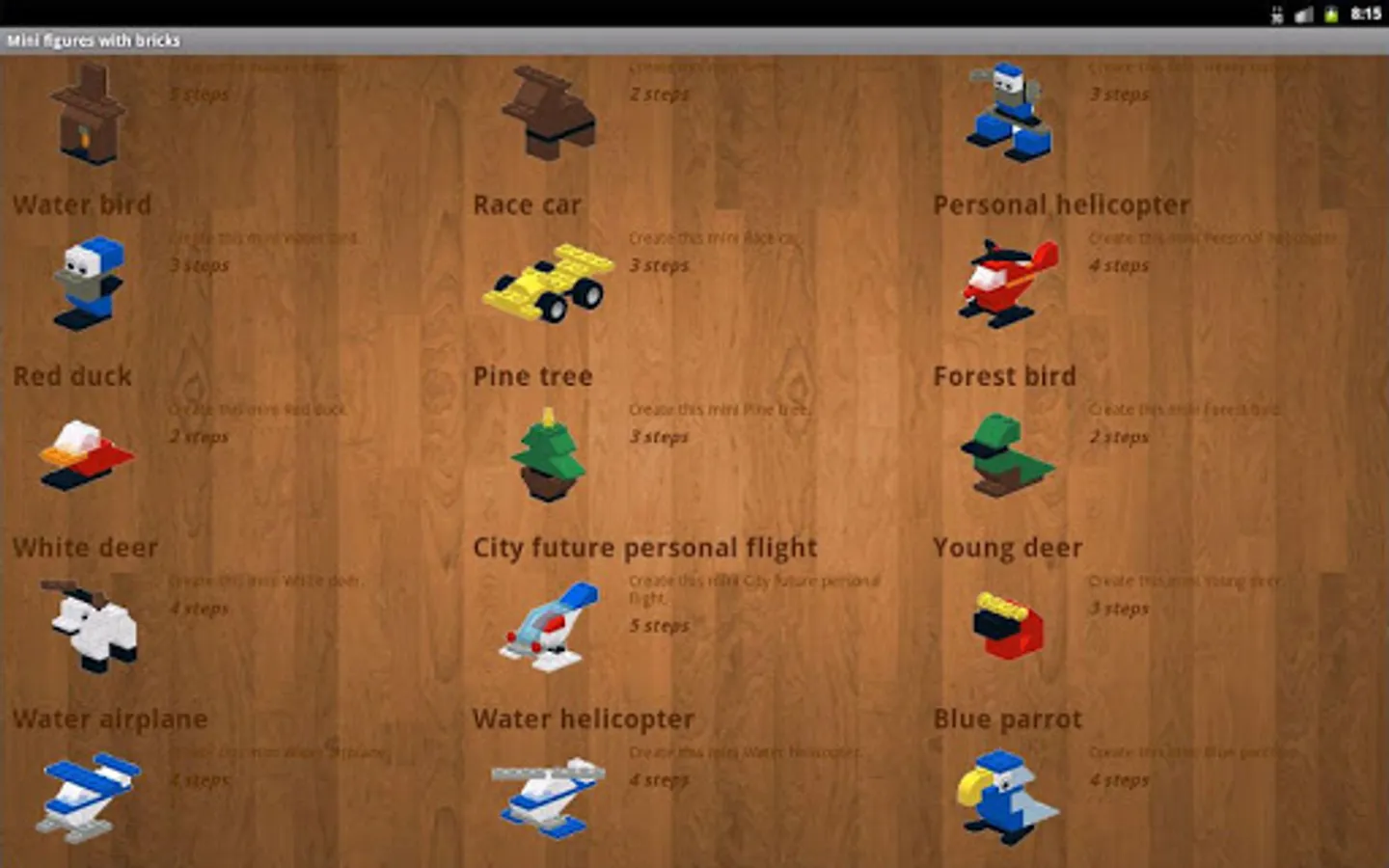 Follow the step-by-step instructions and examples to build mini figures AdFree. Playing is fun and will add to the development of motoric skills. This puzzle game is really for all ages. Bring the bricks together and follow the color pattern. More than 40 mini figures. Mini car, mini person, mini animal and much more!