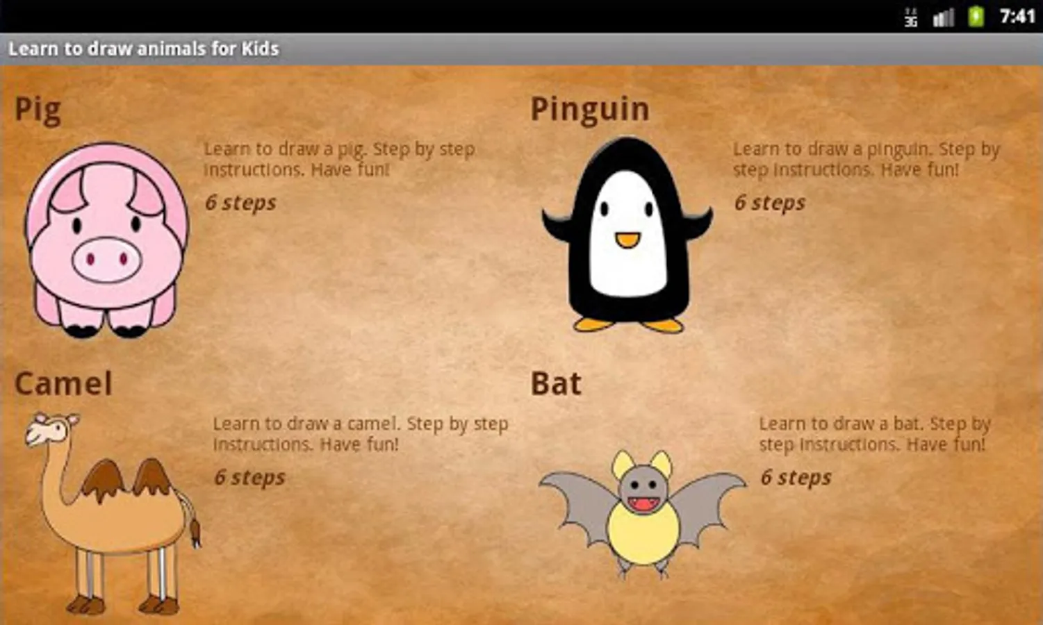 Very simple animal drawings for everyone. Enjoy the simple step-by-step instructions. Only slide to see the next instruction.