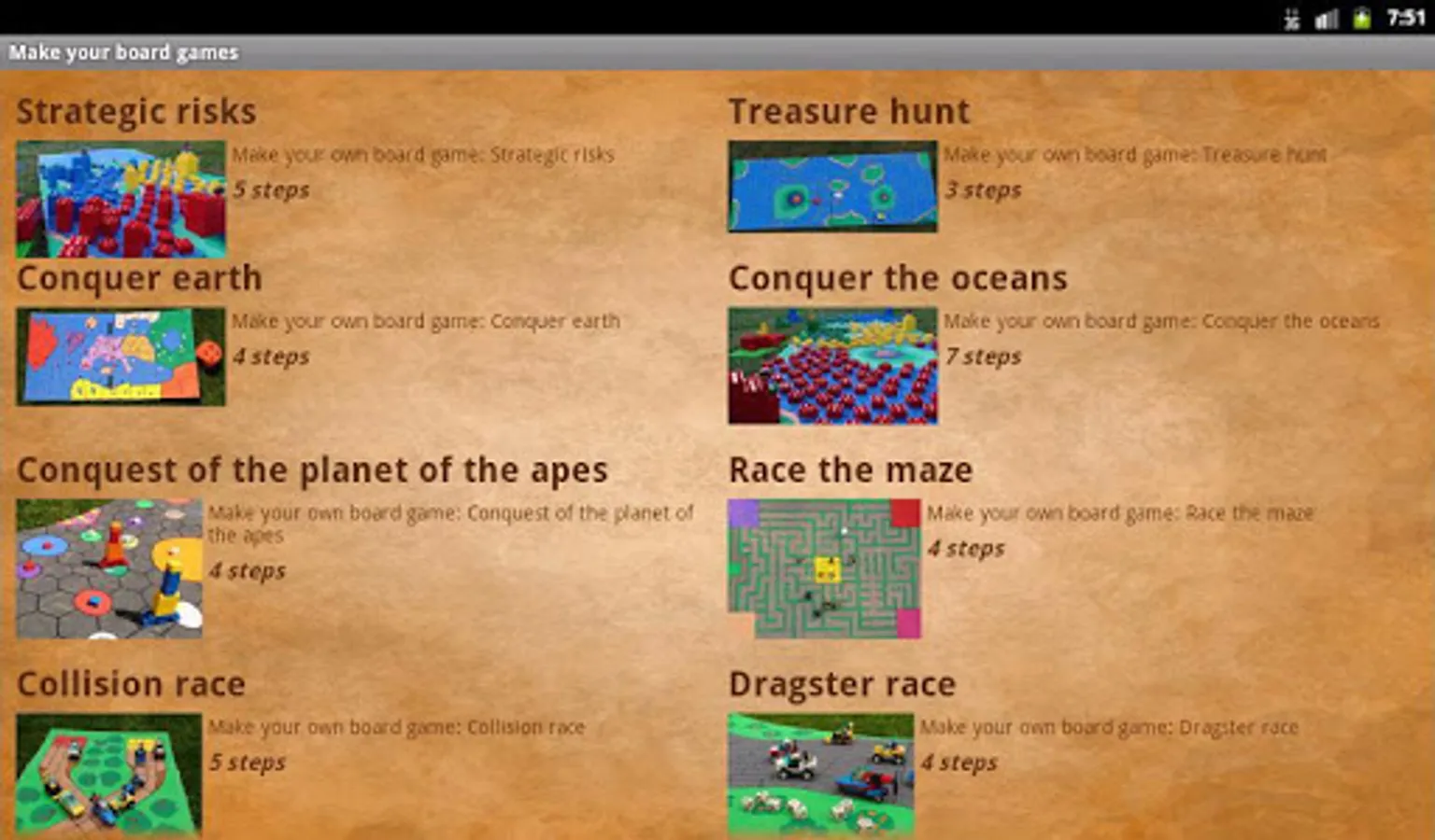 Bored with all those old board games? Why don't you invent your own? It's easy to do and you'll have something you'll want to play when you're done! Board Games are fun and easy to bring along on holidays. Here you can create your own board games. A lot of example designs are available for your own board game, complete with pieces, cards, everything!
