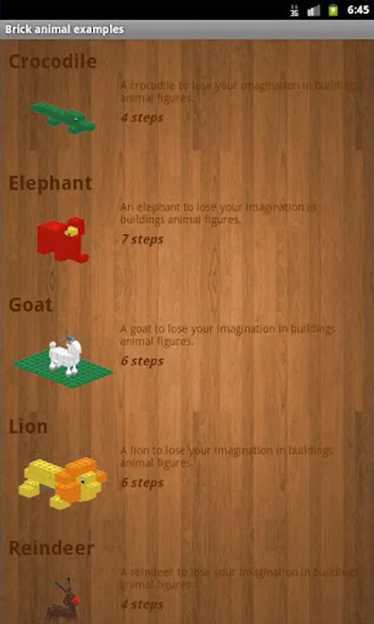 Follow the step-by-step instructions to build animals. Playing is fun and will add a lot the development of motoric skills. This puzzle game is really for all ages. Bring the bricks together and follow the color pattern. Create a cow, horse, giraffe, snake, elephant, duck and many more.