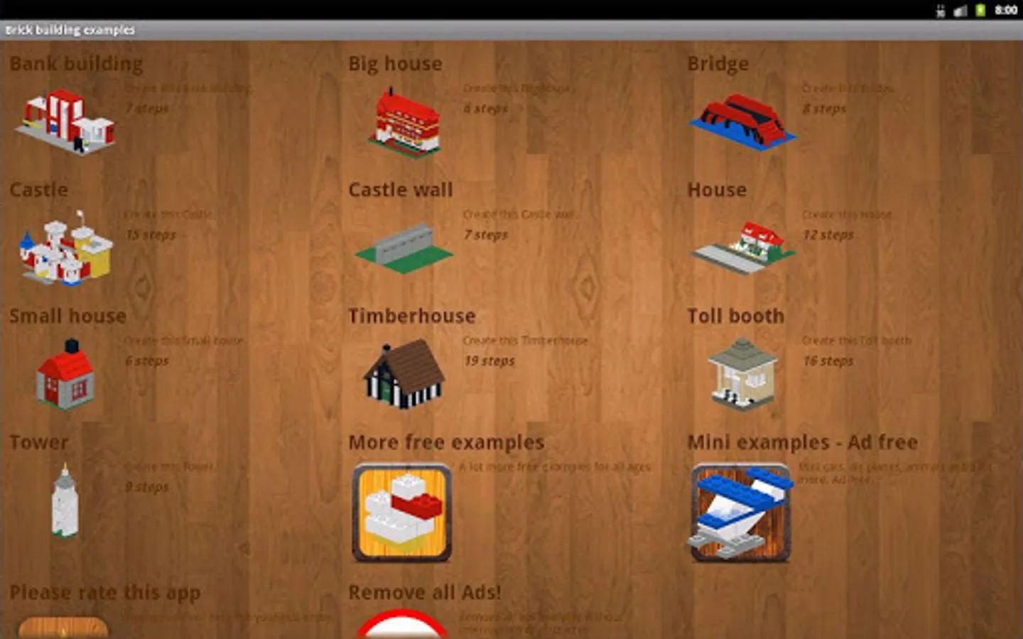 Follow the step-by-step instructions to build constructions. Playing is fun and will add a lot the development of motoric skills. This puzzle game is really for all ages. Bring the bricks together and follow the color pattern. Create a tower, gate, sky scraper, house, apartment and even the Empire State building.