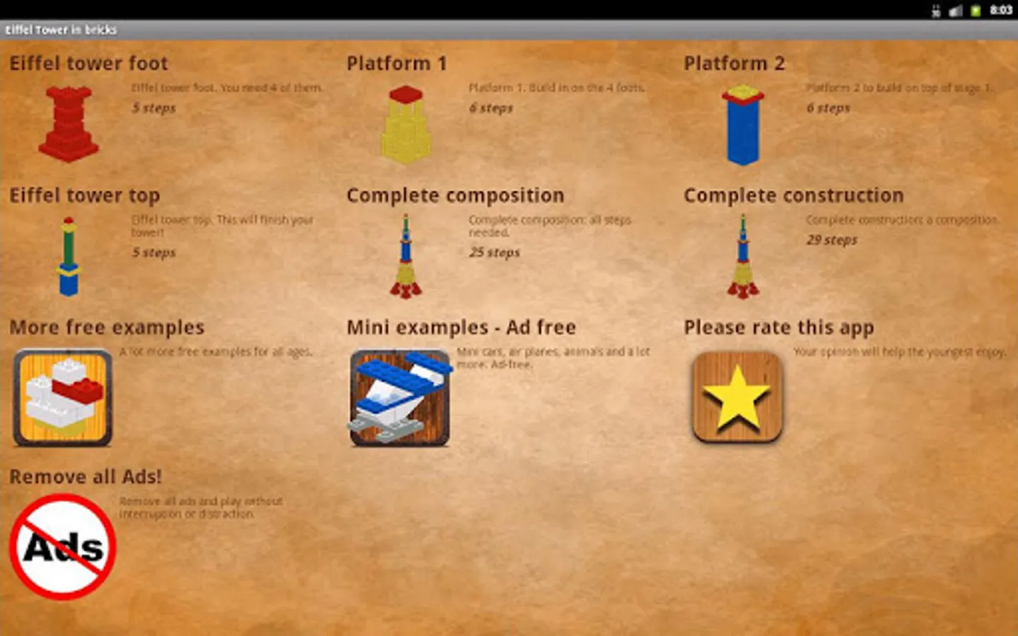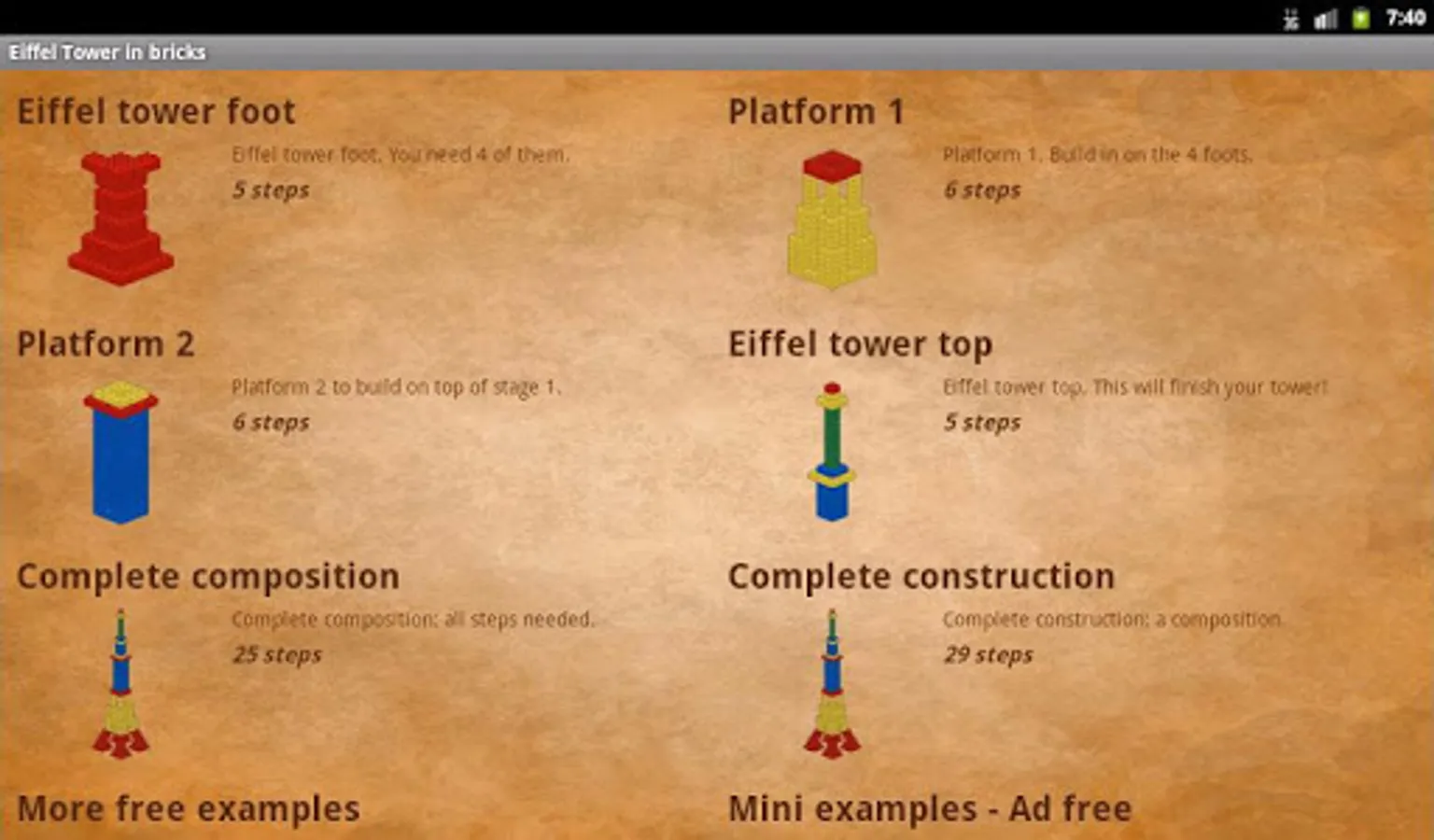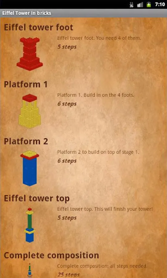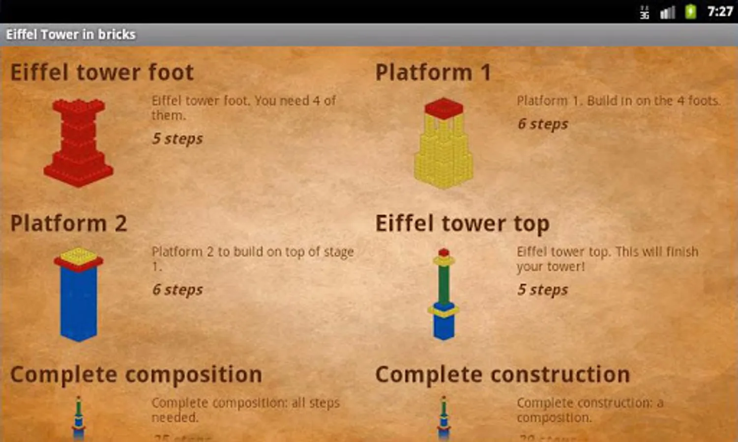 Build the Eiffel Tower with step-by-step instructions. This puzzle game is really for all ages and let you feel the atmosphere of Paris. Bring the bricks together and follow the color pattern. Go for the tower and have hours of fun in making this replication of the real Eiffel Tower in Paris. Built in 1889, it has become both a global icon of France and one of the most recognizable structures in the world. The tower is the tallest building in Paris and the most-visited paid monument in the world.