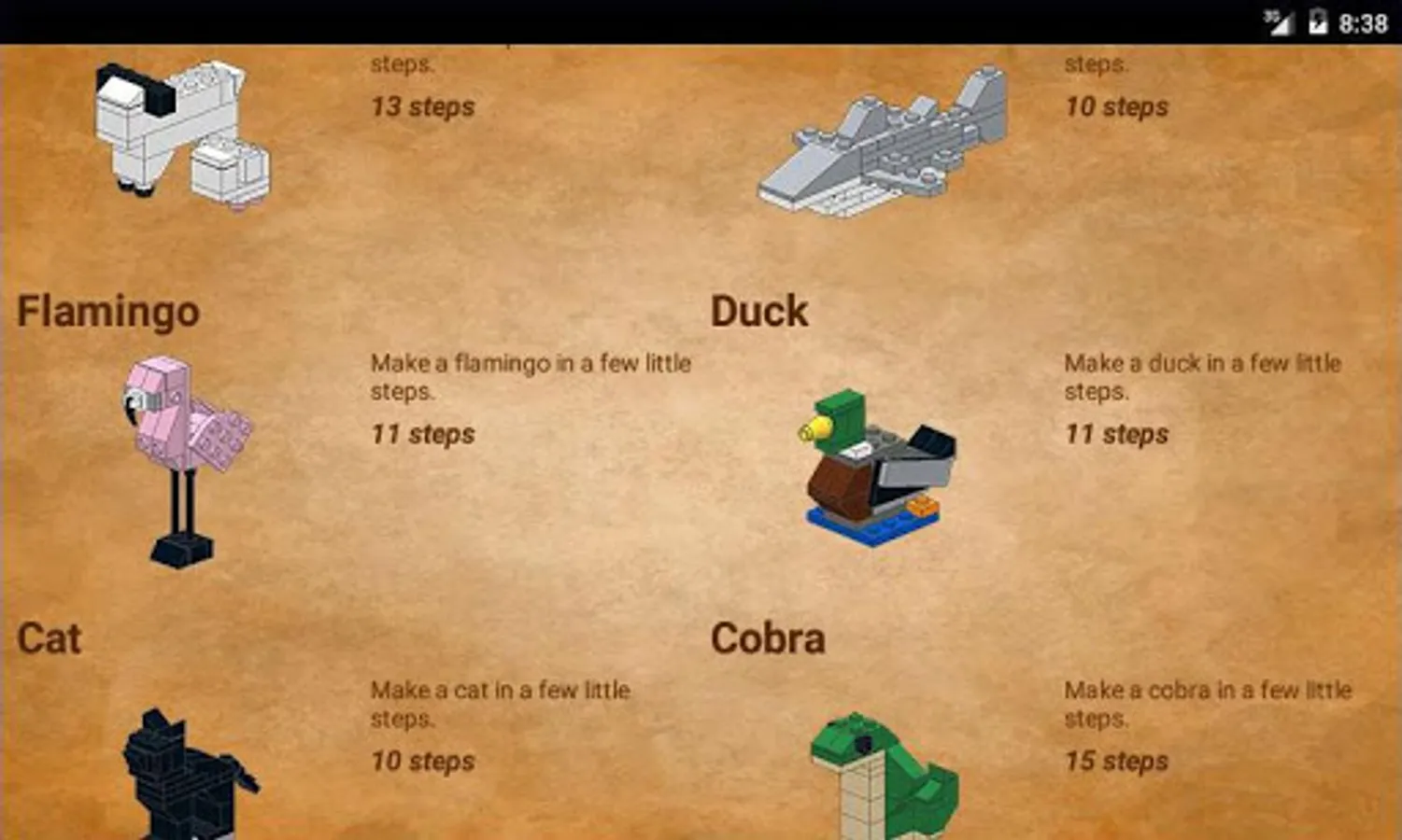 Follow the step-by-step instructions to build exotic animal figures. Playing is fun and will add a lot the development of motoric skills. This puzzle game is really for all ages. Bring the bricks together and follow the color pattern.