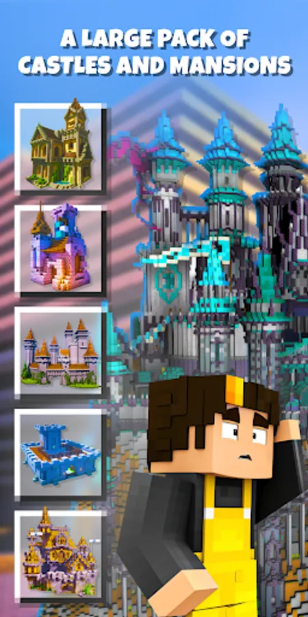 Buildings for Minecraft - This add-on allows you to install buildings directly on the map. There are many categories: houses, mansions, medieval, creations, boats, castles, pixel art, statues. This constructor creates the objects automatically, so you don't have to spend hours studying the instructions. The object is exactly where you need it - adjust the position with the 3D viewer. Add your creations and transfer them between worlds. Create the map of your dreams using the best buildings from other maps.