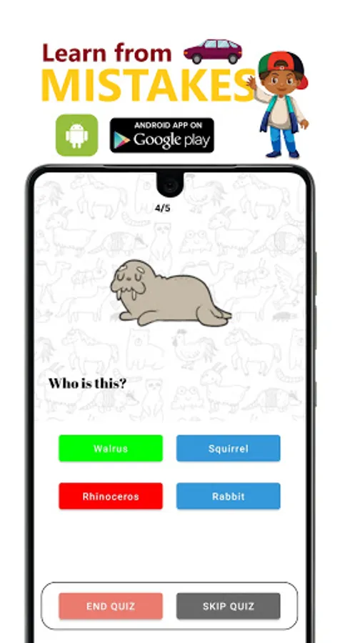 This is a Quiz App for Kids that can understand and match images with the correct answer. There are 4 categories and inside the each category there are some levels. Inside a level there are some questions with 4 answers and the image. User has to match the correct answer with the Image.