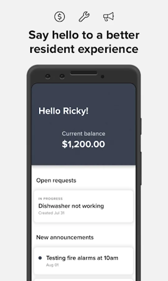 - Don't stress if you have an issue that needs to be fixed! Easily submit a request right from the app and include a photo so your property manager can get it resolved as soon as possible.