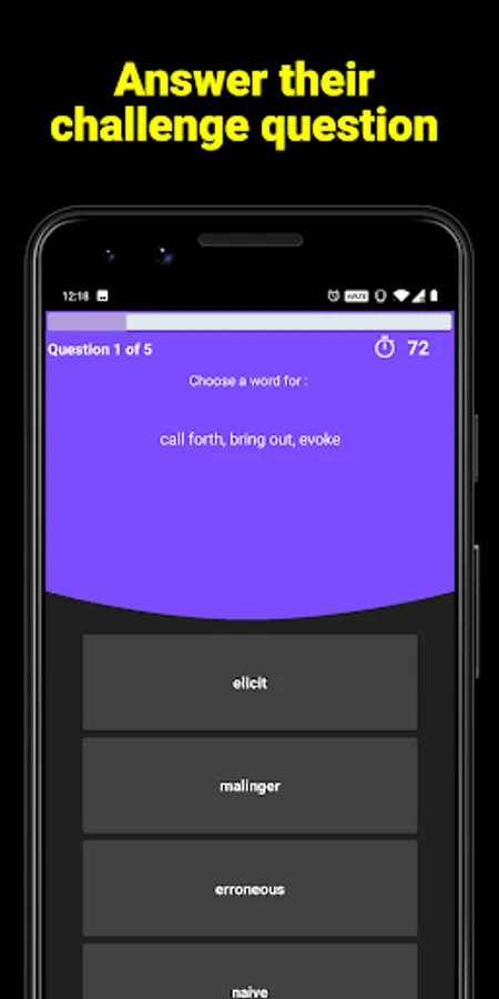 Two Player Vocabulary Quiz Game - challenge your opponent with a word and answer their challenge question, whoever gets the highest score in a round of 5, wins!