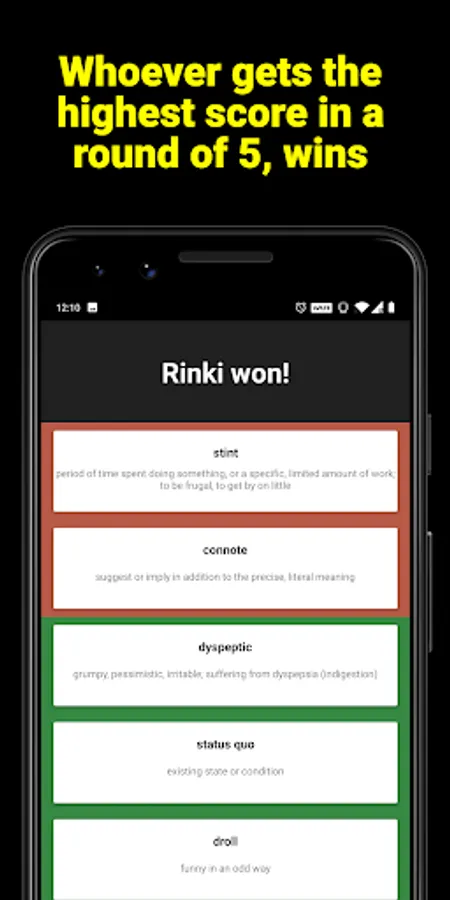 This game is easy to play, ideal for minutes of fun, adrenaline rush while training your brain. You can challenge your friend or unknown opponents. Suitable for both adults and children, experiencing joy as you win and learning even if you lose. Start as a beginner and climb up the leaderboard to become an expert. This game is perfect for anyone who is on the lookout for an outlet to learn and practice Barron-famous word list.