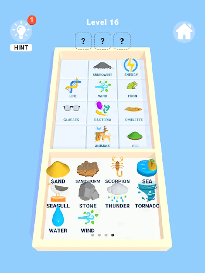 - Start with simple elements: Earth, Fire, Water, Air and Wind and other.