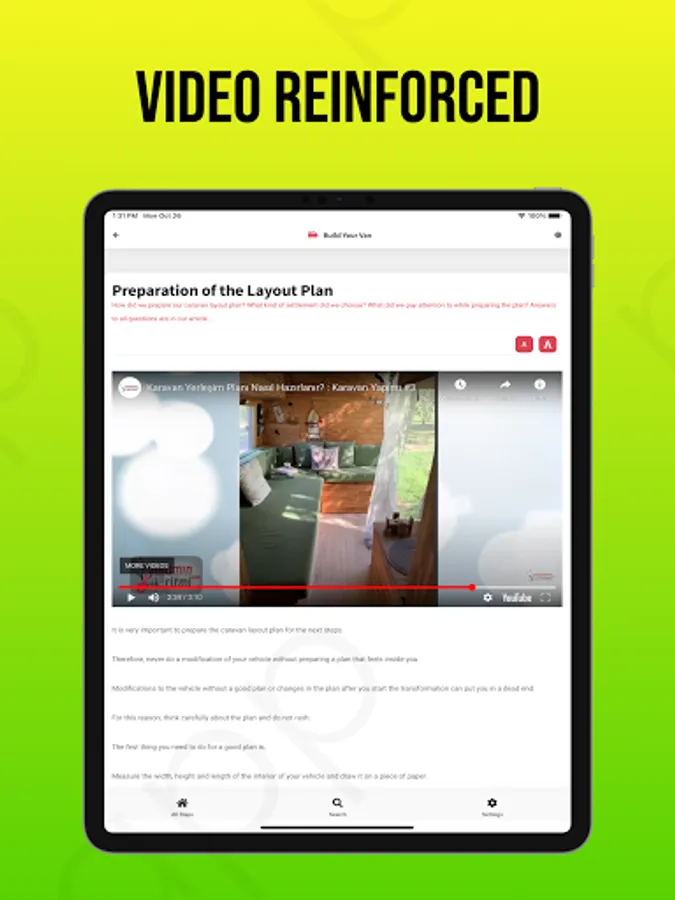 As a result of long researches, a family of 3 people who made their own caravans in 14 months without using any harmful materials and lived with pleasure in 3 years and 4 seasons, Thanks to this application, which explains how to make the caravans that they test by living in them from -42 degrees to +35 degrees, and what materials they use in the form of a detailed and sequential guide, you can make your own caravan and enjoy the caravan without any problems.