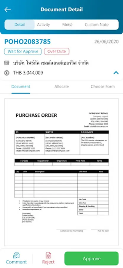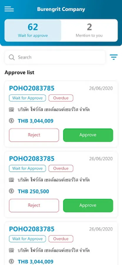 PJM App Approve is an application for document approval, convenient, easy to use, just log in with username and password that you use on POJJAMAN ERP program via mobile phone, tablet, iPad. The screen shows clear document details. Thus allowing the approver to review the document before approval. The approver can communicate with stakeholders by tagging their name. And can set up a 2-layer unlocking system to increase the security of each document approval / disapproval. Can be used in both IOS and Android operating systems.
