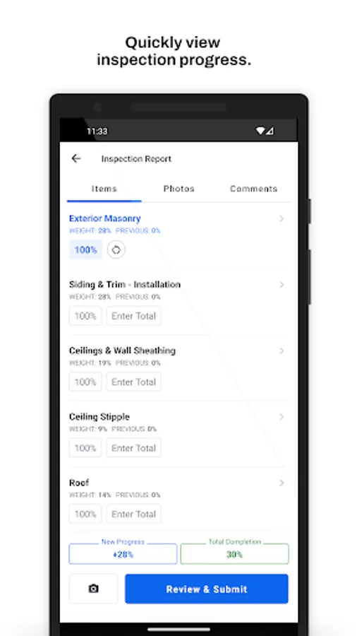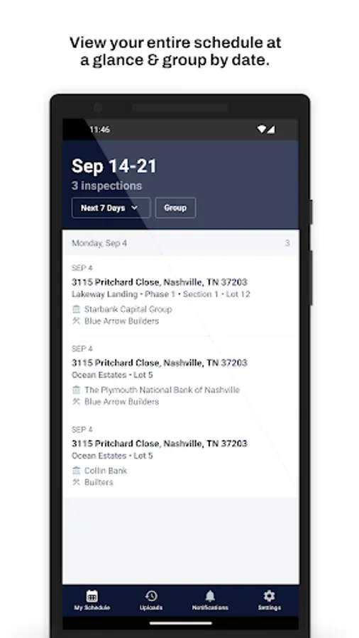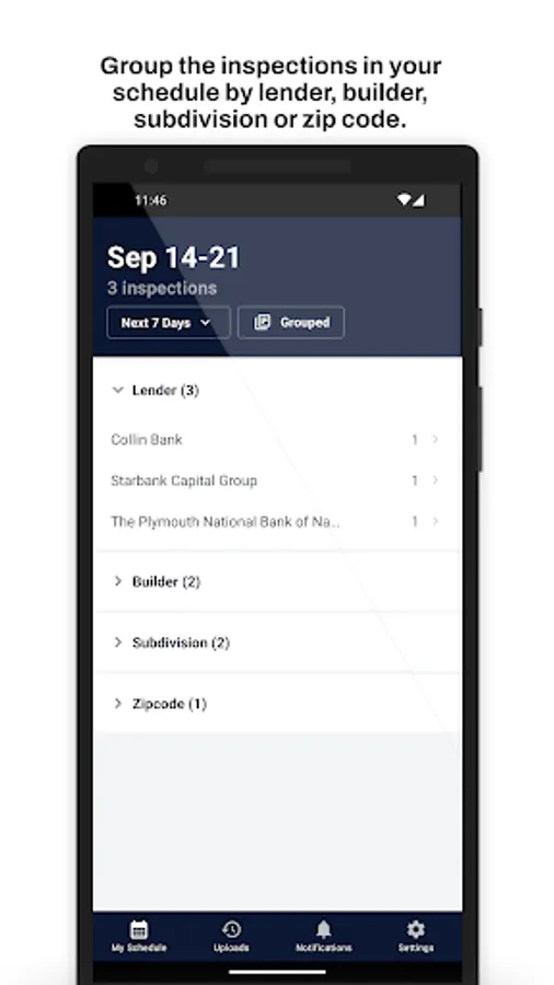 The Built Inspect App empowers inspectors to complete draw inspections directly from their mobile device to deliver real time inspection results to lending institutions. This app allows you to easily organize, schedule and manage your inspections right at your fingertips! Easily inspect properties by taking photos, track construction progress and record comments for lenders while on the construction site. The Built Inspect App removes the need for outdated paper inspection sheets! Inspections will be saved in areas of poor service & automatically submitted once connected to WiFi or cellular data reducing upload issues - allowing the inspector to complete inspections anywhere.