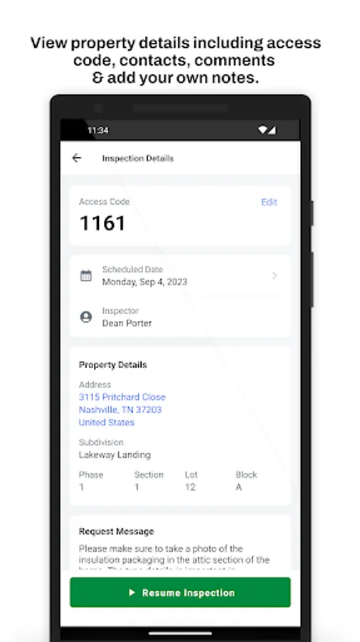 Inspector Notepad: Personal section for the inspector to serve as reminders, store additional property information, add contact information, etc.