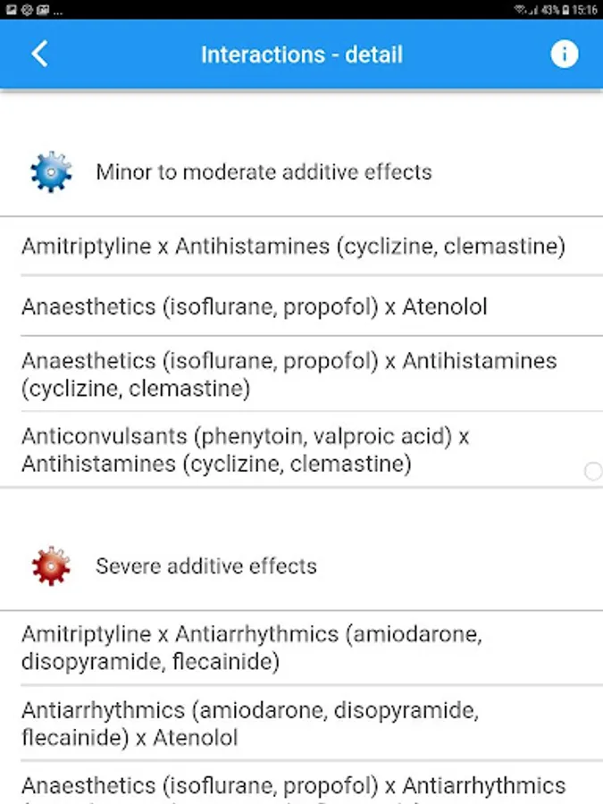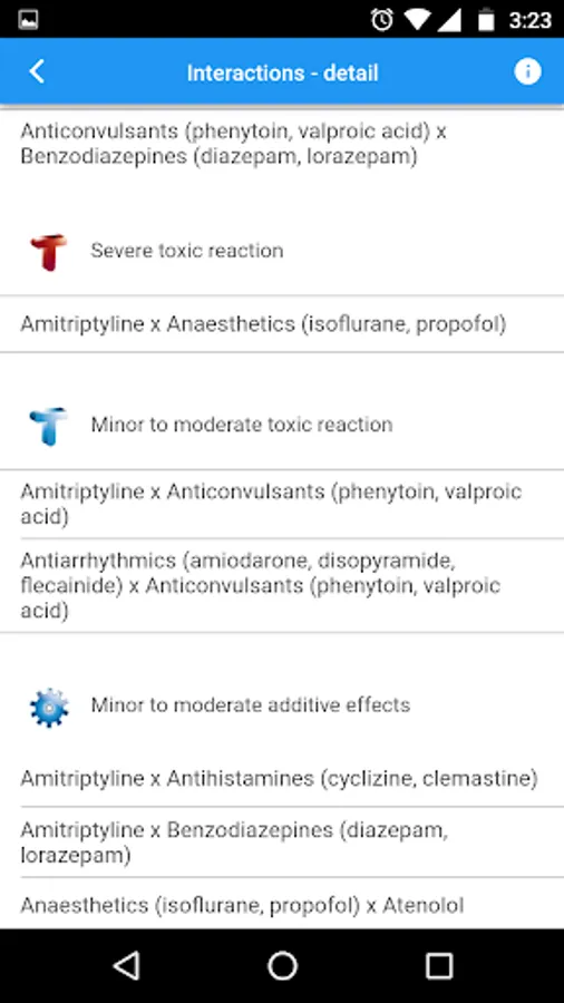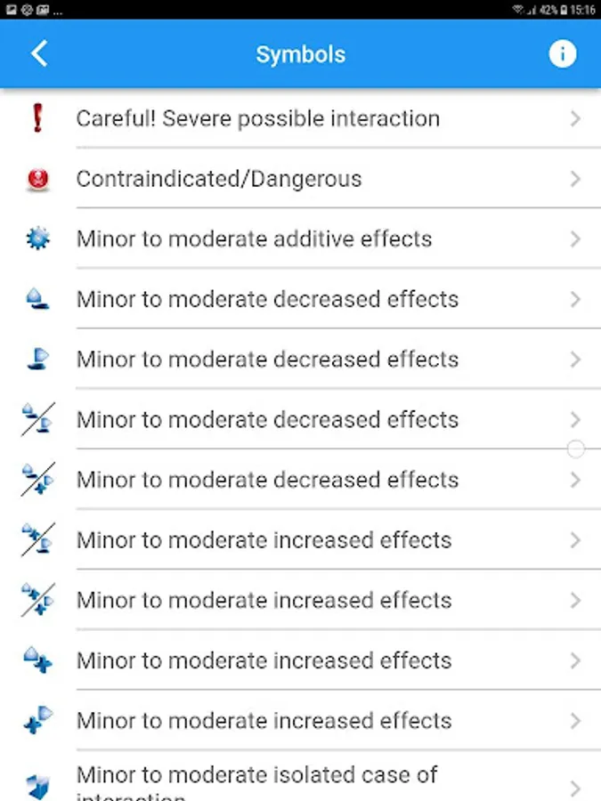 This application allows for the comparison of the most used drugs in Primary Care treatment. 'Drug Interaction Primary Care' aims to alert for the possible pharmacological interactions of the combination of certain drugs.