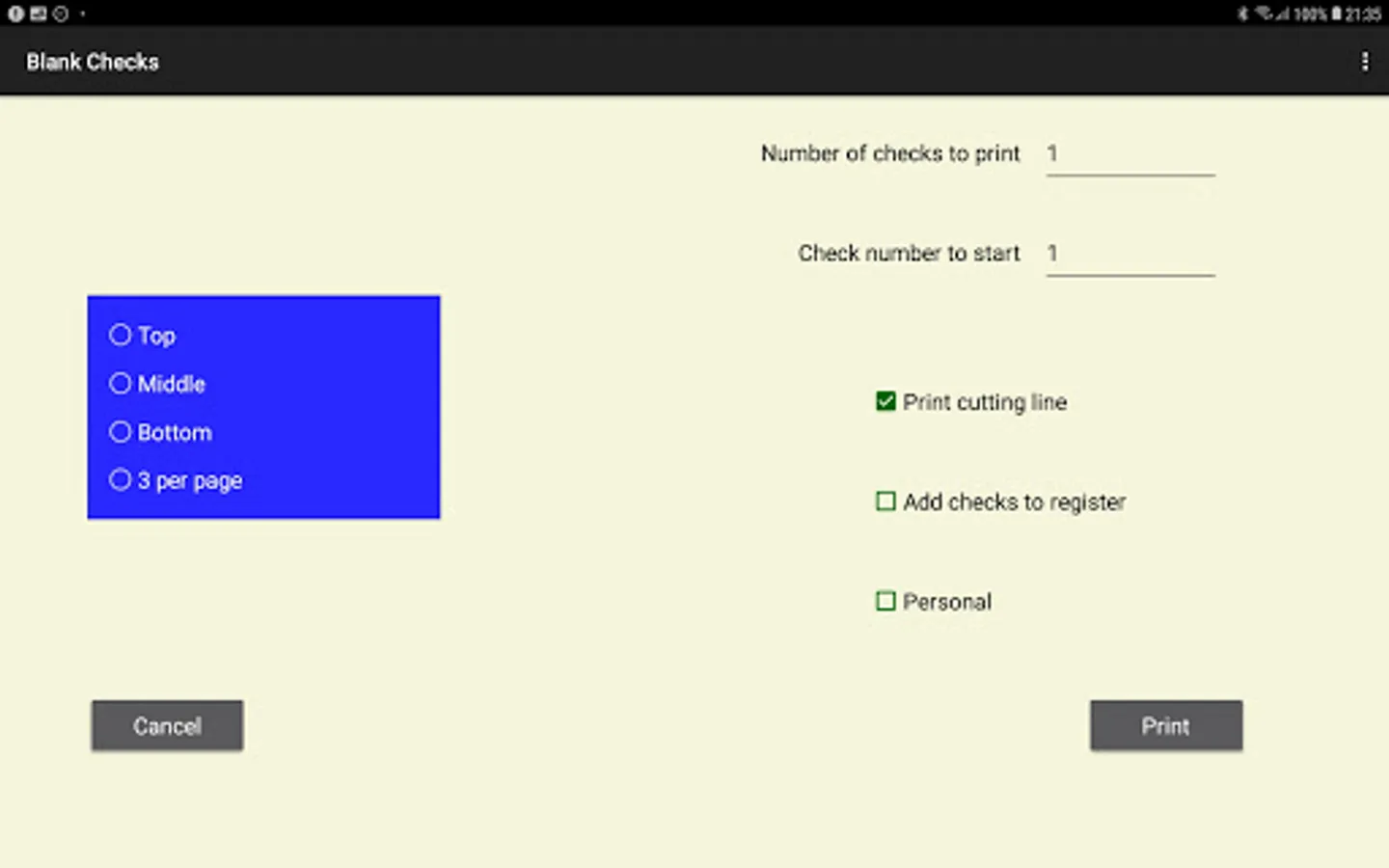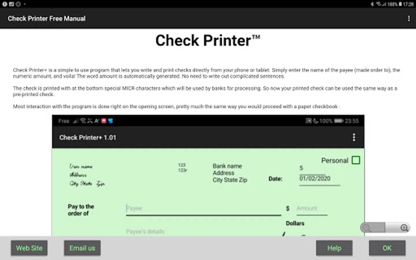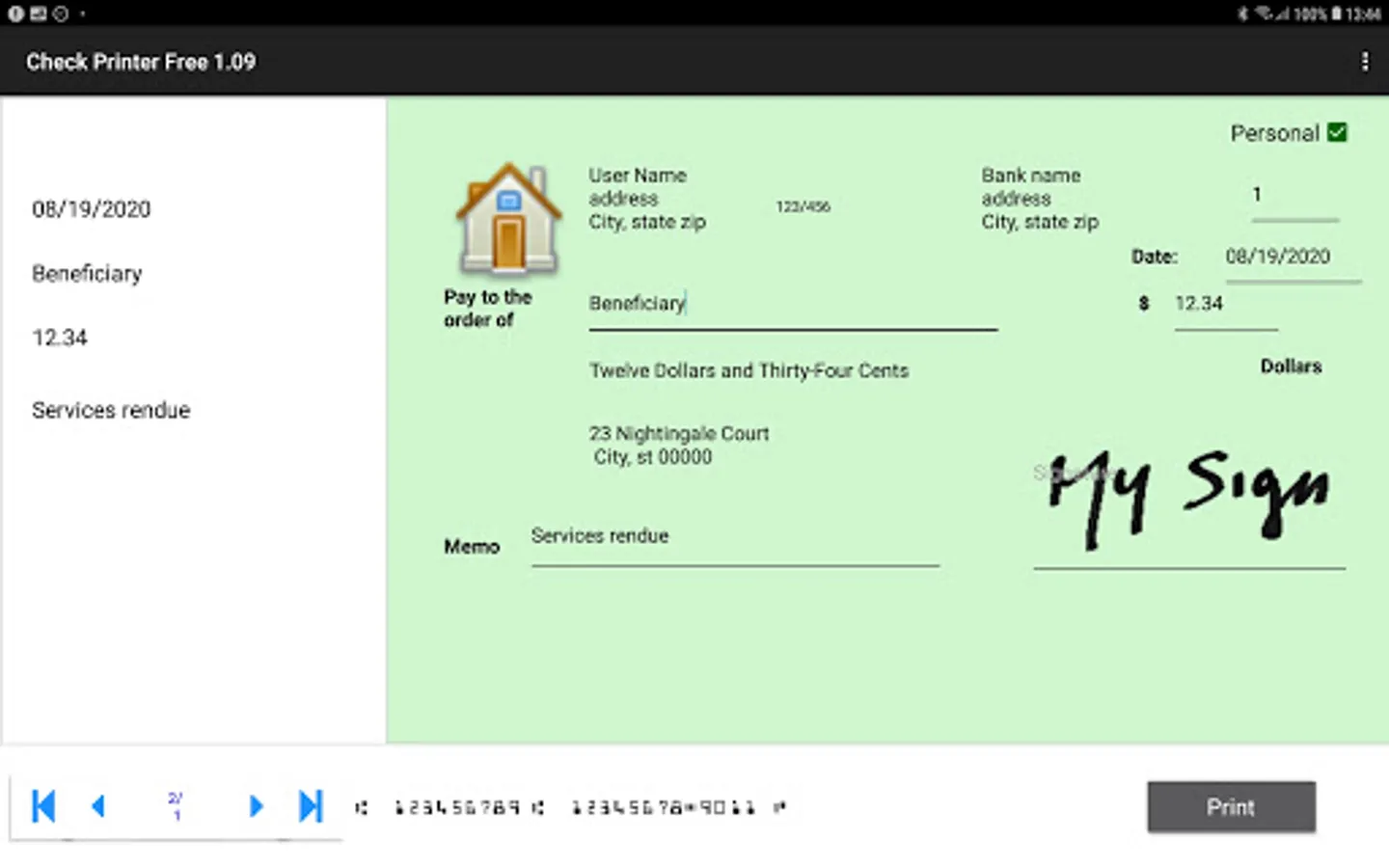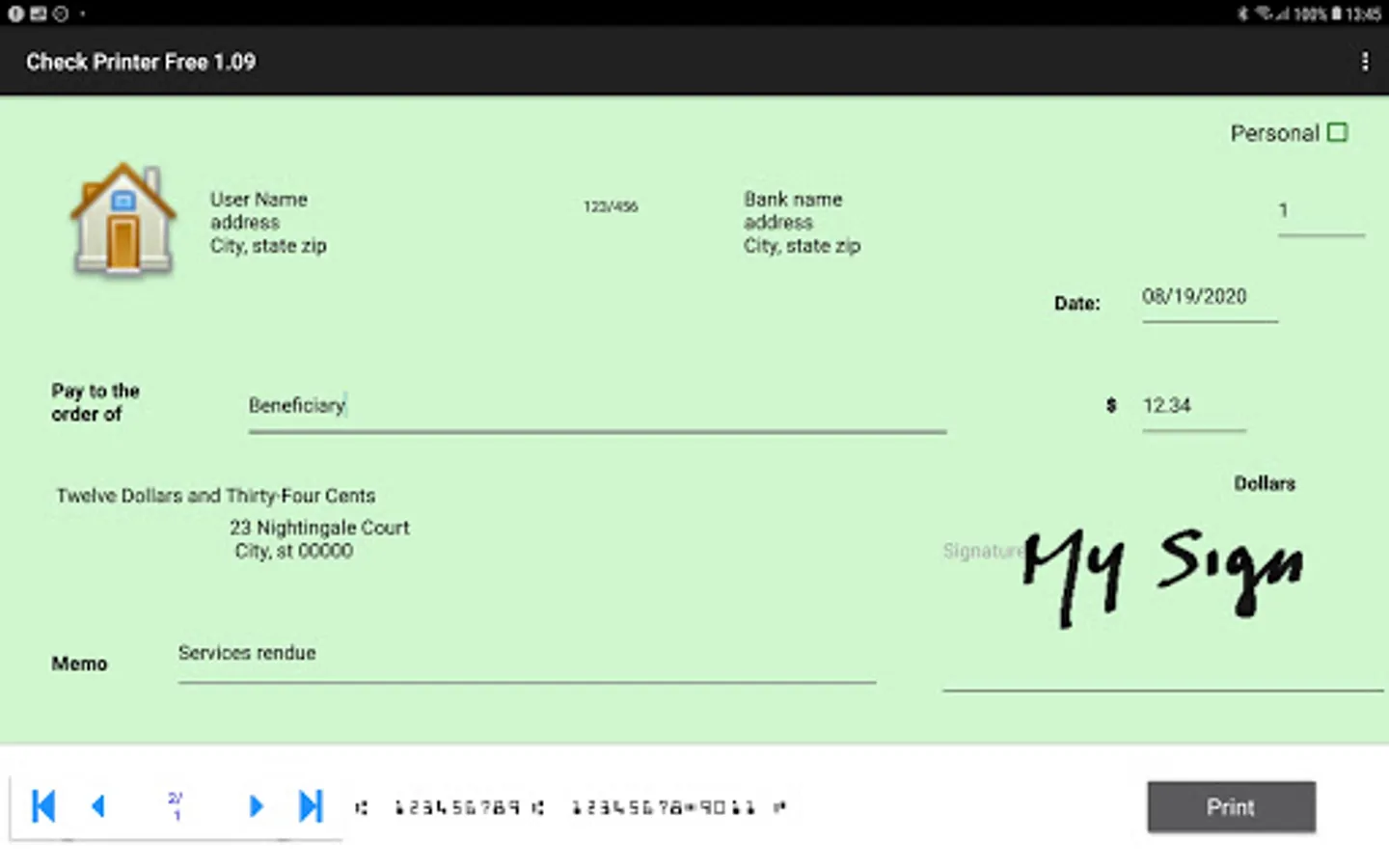 This check writer is most complete, just like the desktop one : write a check as you would in the physical world, hit print, and that's it. It works with all wireless printers as well as Google Cloud Print.