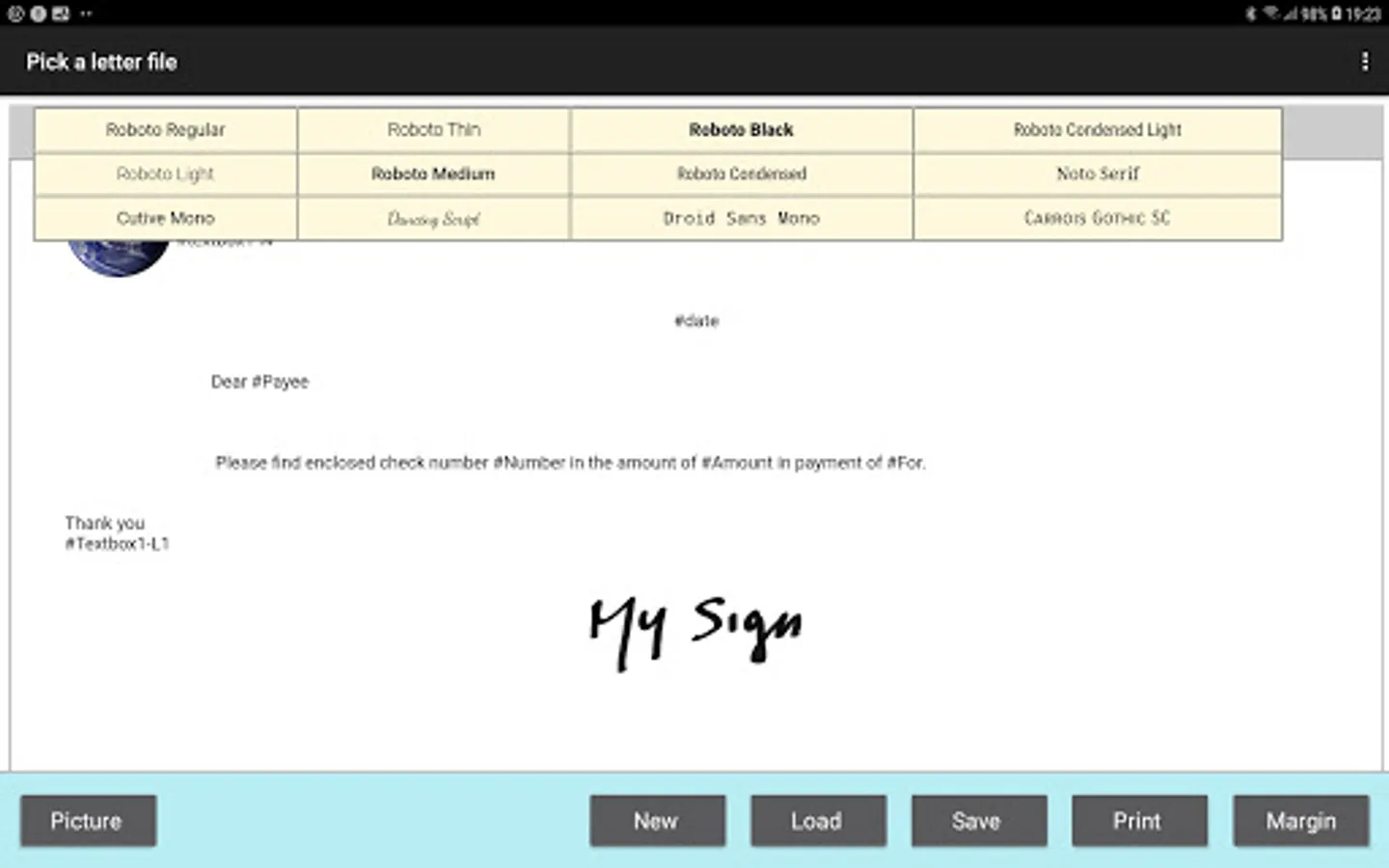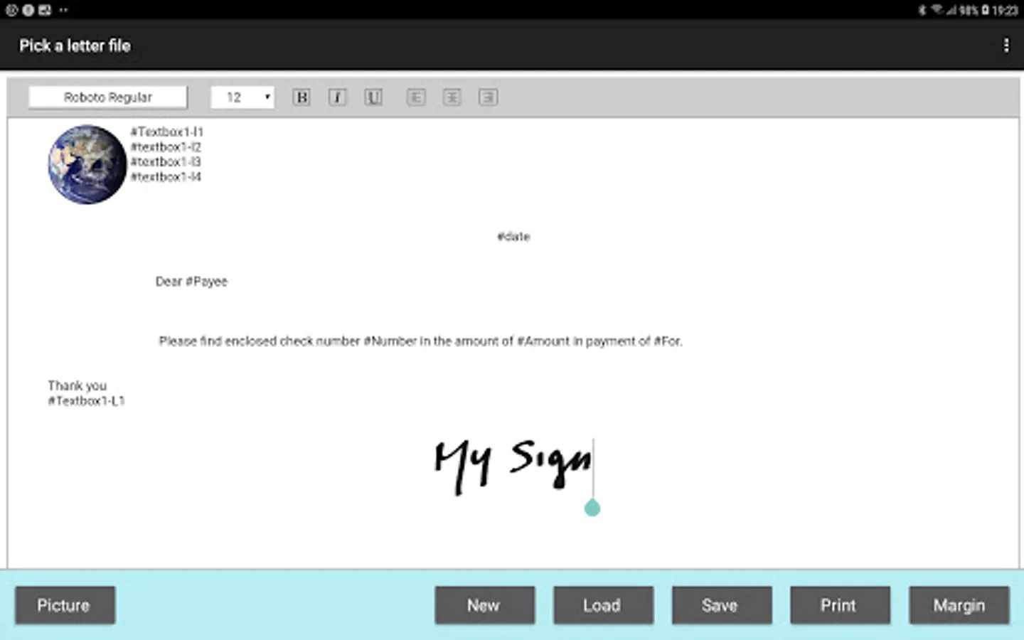 Check Writer+Letter will sign your checks automatically with your own picture, or simply with text content.