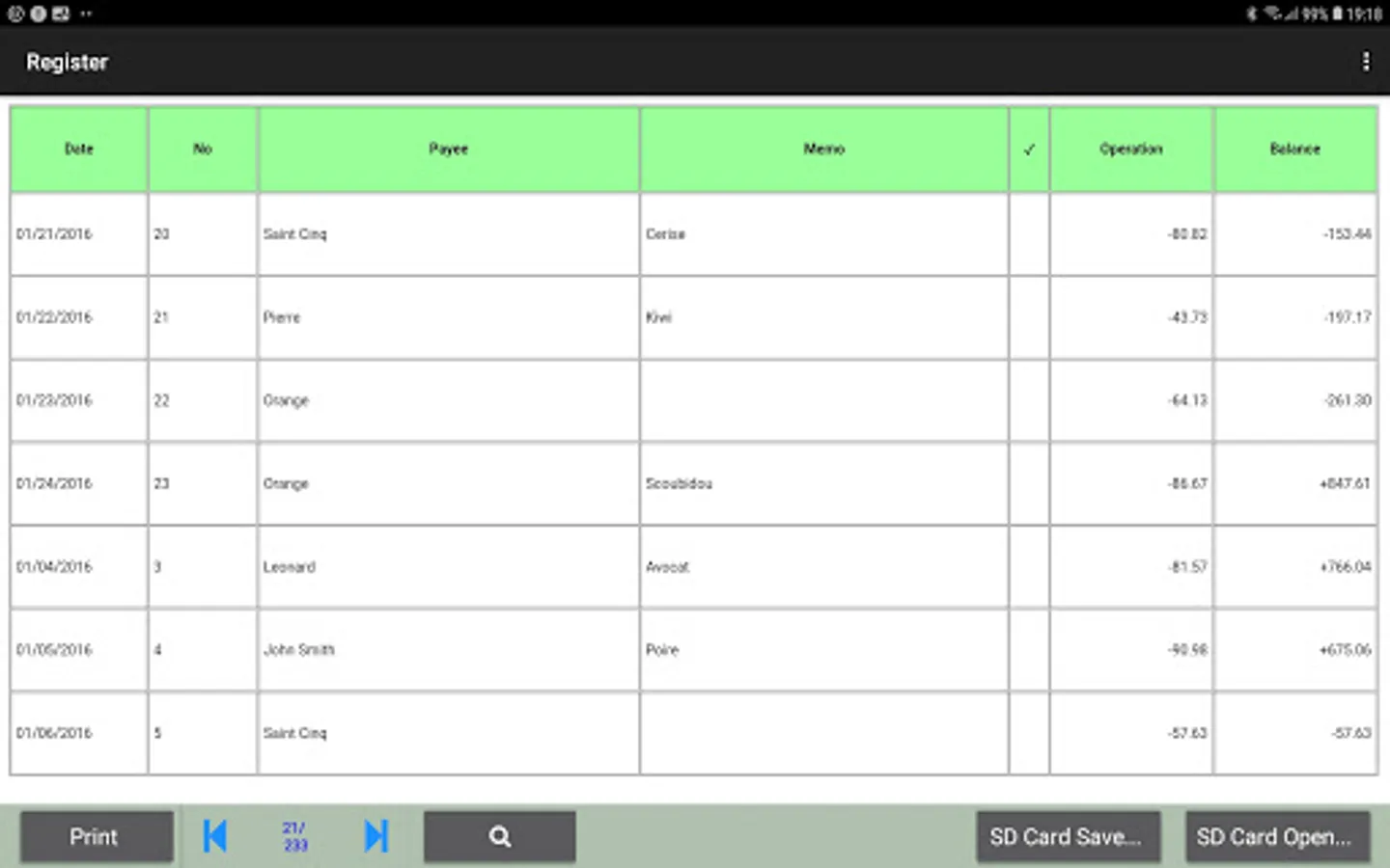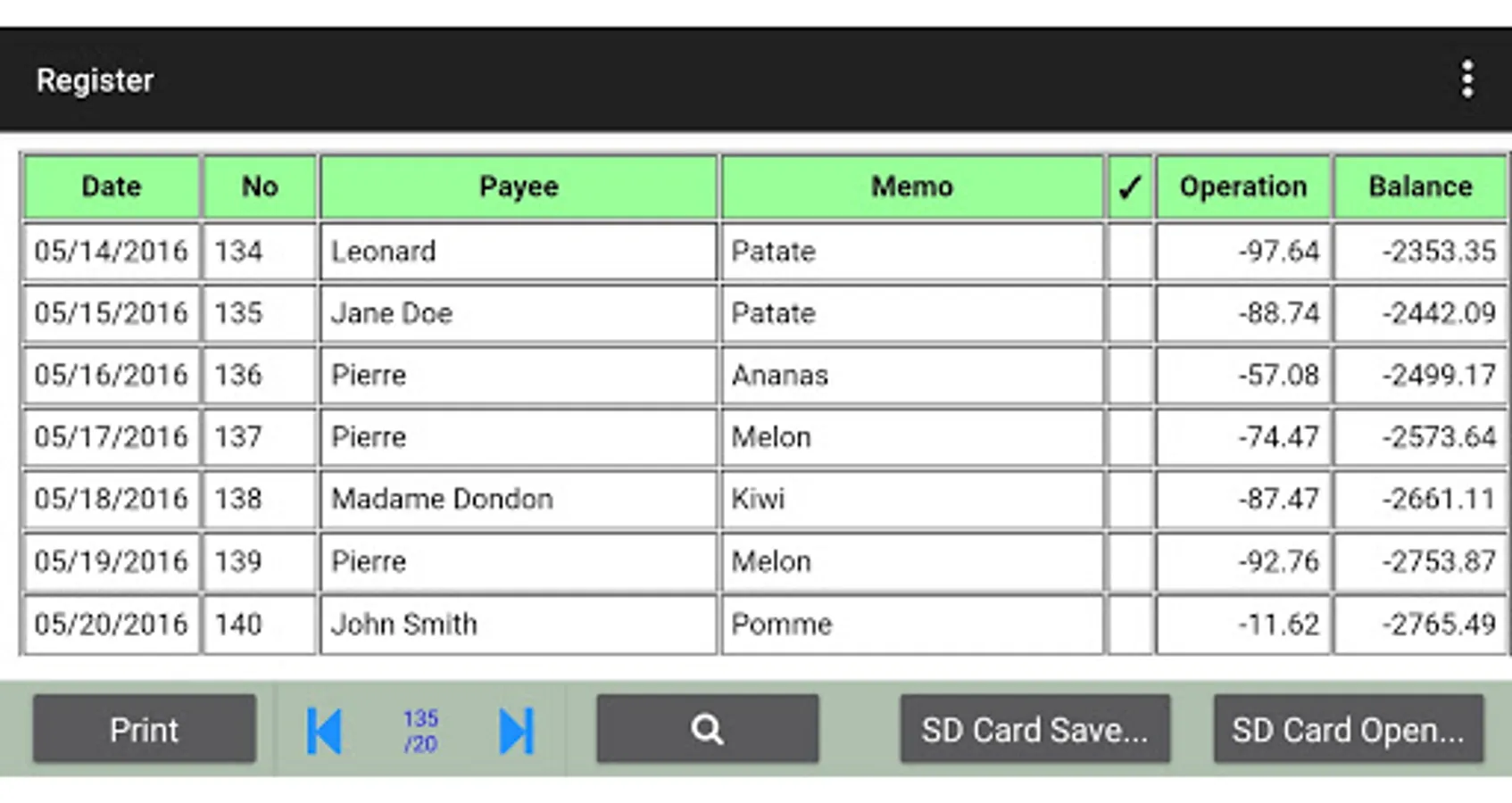 Balance is calculated automatically. Set different fonts to print your name on checks.