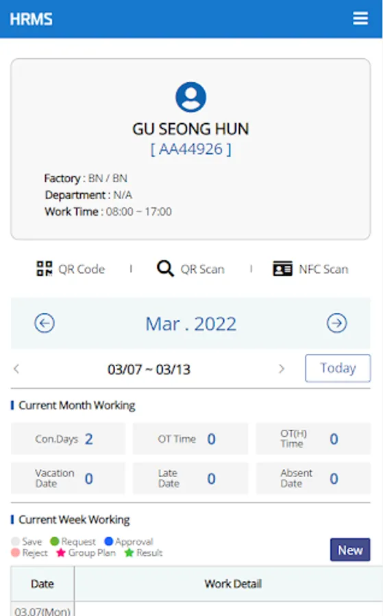 근무 신청관리 가능합니다.
