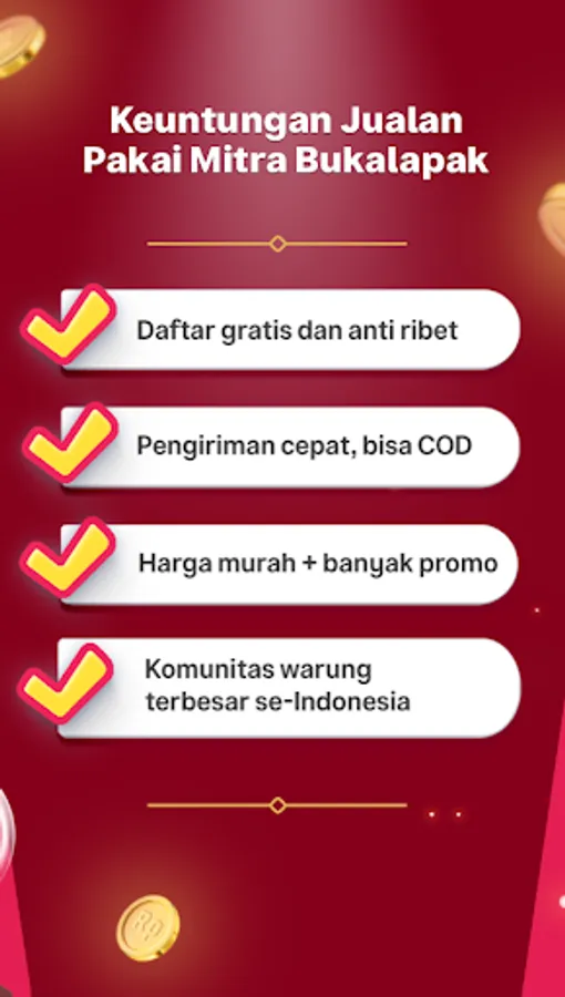 Mitra Bukalapak is No. 1 business app for store, stalls and kiosks owners in Indonesia, offering the most comprehensive range of products and services, including mobile credit top-ups, PPOB (Payment Point Online Bank), money transfers, e-wallet top ups, wholesale, and game vouchers.