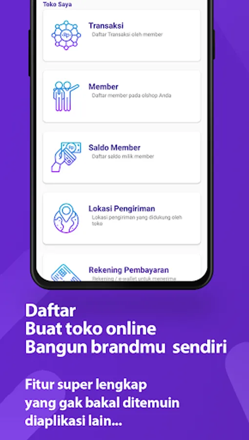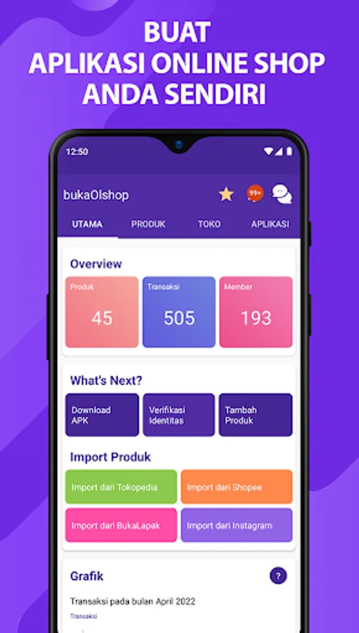 bukaOlshop makes it easy for you to be able to have your own Android application without having to think about coding, cost, display and everything that is technical. Simply install and you can create applications only from your smartphones.