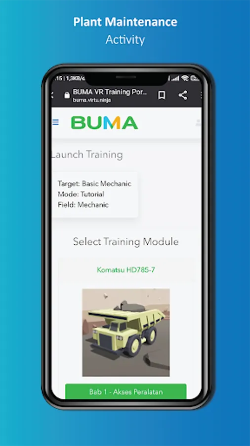 Virtual reality is a technology that allows users or users to interact with the environment in a virtual world that is simulated by a computer, so that users feel they are in that environment. Virtual reality technology has been widely applied in several industrial sectors such as medicine, aviation, education, architects, the military, and mining. The virtual reality developed in this application is used to assist the training and development process in the company, especially users to learn about the work of supervising coal mining operations, example: morning briefing, supervising activities at the front and disposal. This mobile version of virtual reality allows users to study heavy equipment units by viewing 3D images according to the real unit without using additional devices such as VR headsets and other supporting devices