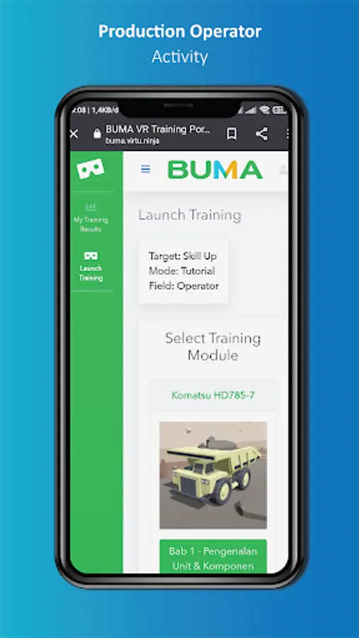 Virtual reality is a technology that allows users or users to interact with the environment in a virtual world that is simulated by a computer, so that users feel they are in that environment. Virtual reality technology has been widely applied in several industrial sectors such as medicine, aviation, education, architects, the military, and mining. The virtual reality developed in this application is used to assist the training and development process in the company, especially users to learn about the work of supervising coal mining operations, example: morning briefing, supervising activities at the front and disposal. This mobile version of virtual reality allows users to study heavy equipment units by viewing 3D images according to the real unit without using additional devices such as VR headsets and other supporting devices.
