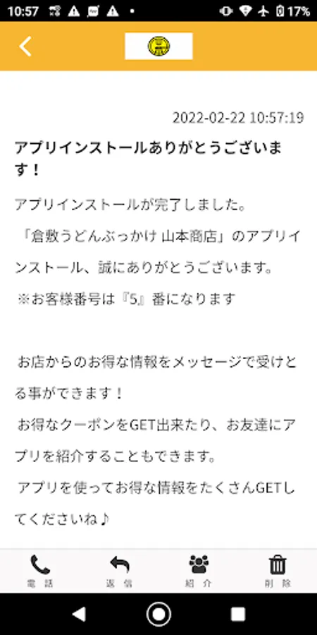 You can introduce the Udon Yamamoto Shoten app to your friends through SNS.