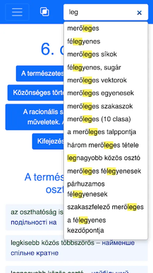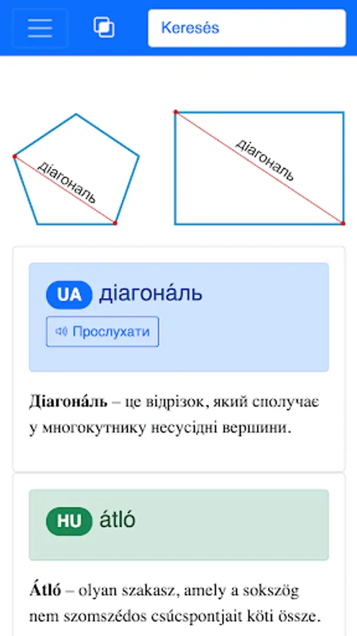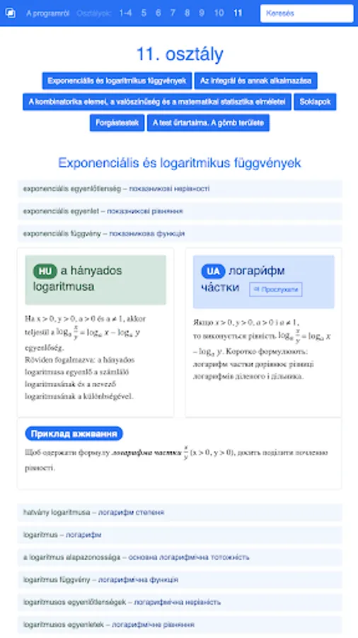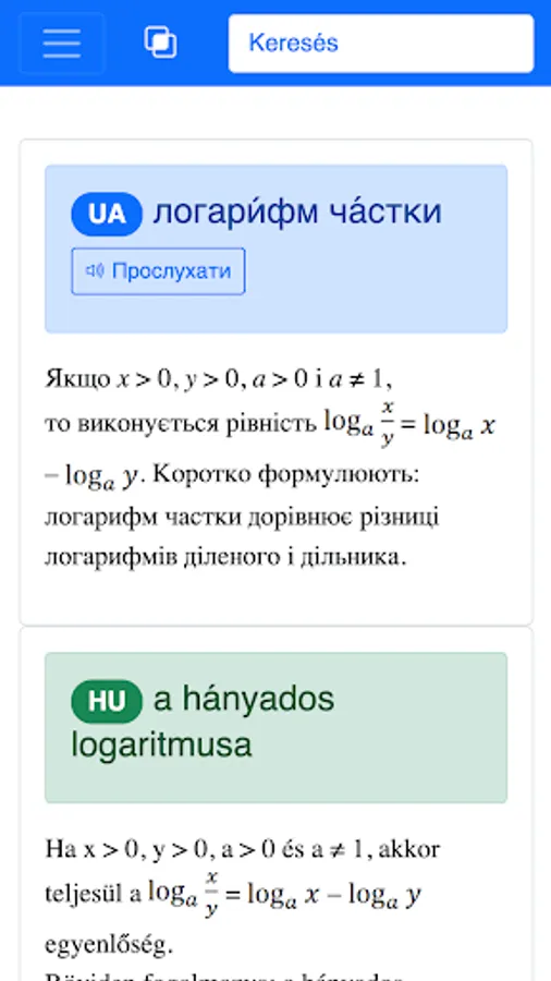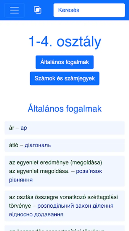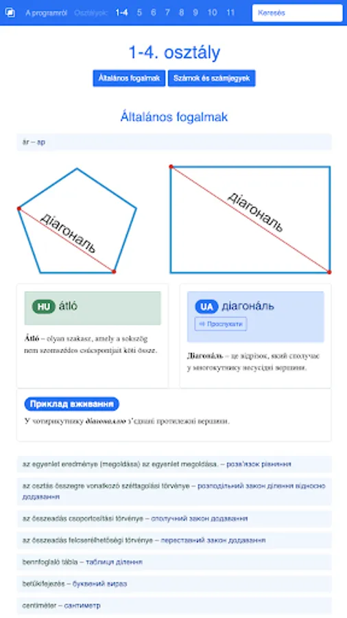 It is possible to search for both Hungarian and Ukrainian terms in the dictionary, so it is excellent for solving homework and can also function as an additional resource during math lessons.