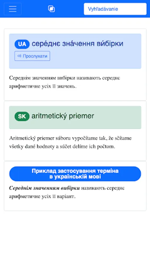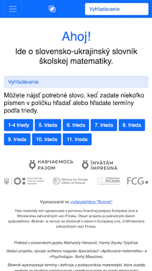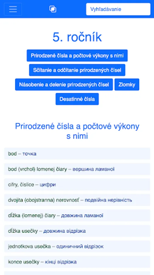 In the dictionary, you can search for terms in Slovak and Ukrainian. It can be used independently during homework and as an additional resource in math lessons.