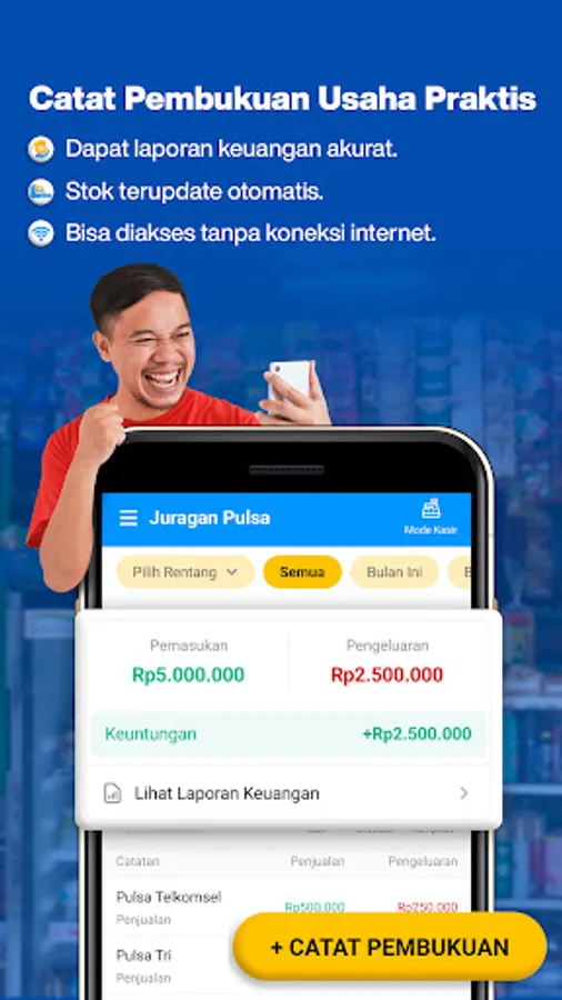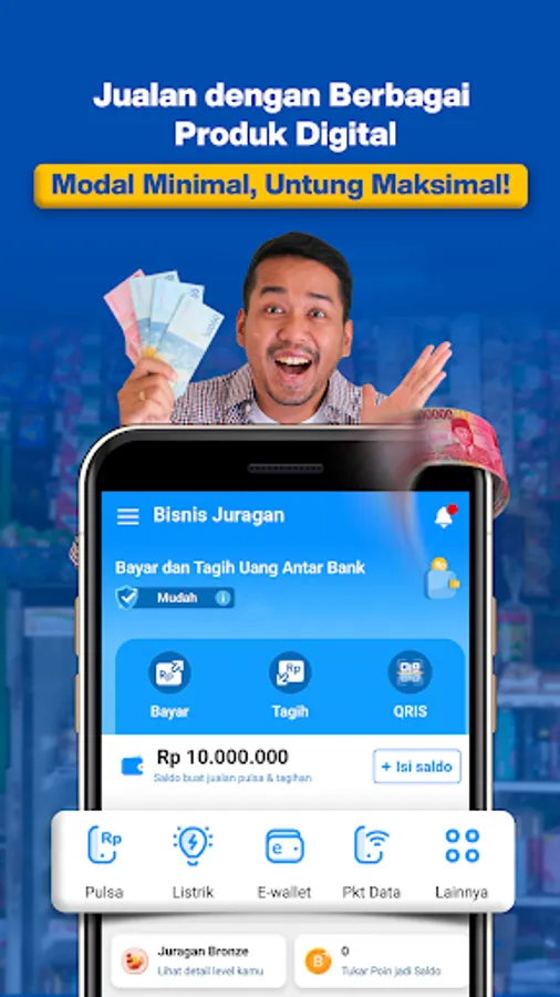 As a complete financial application for business development, financial record, and digital payment. BukuWarung is a perfect application for payment agents, phone credit agents, or PPOB. You can use this application to sell phone credit, electricity tokens, e-wallet top-up, internet data packages, and even your monthly bills! How awesome is that?
