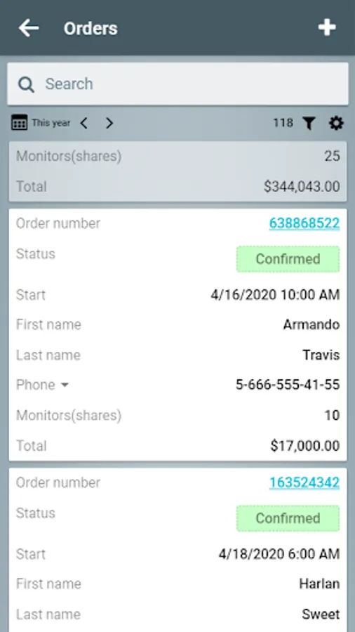 - Search for orders by criteria and scanned QR code.