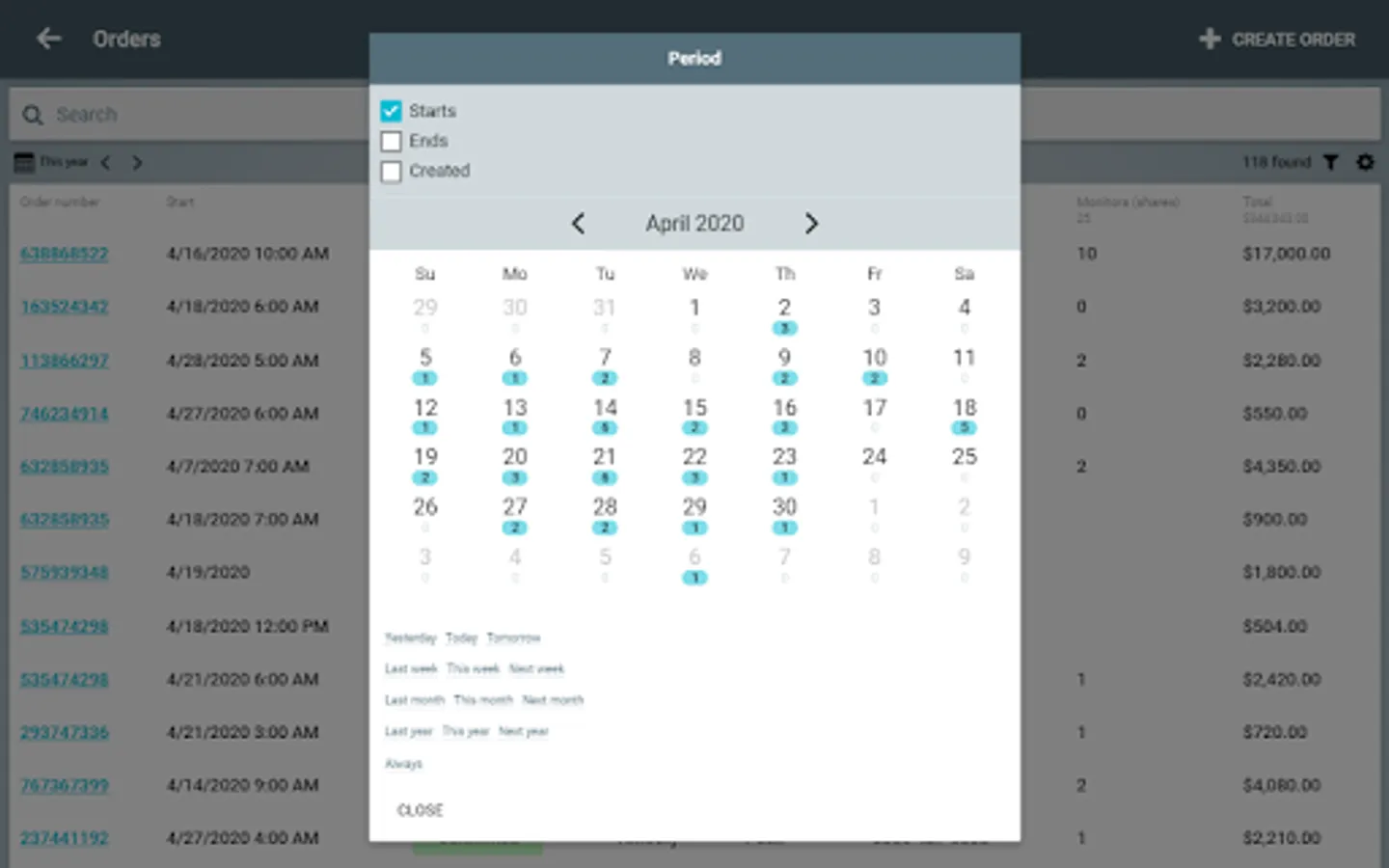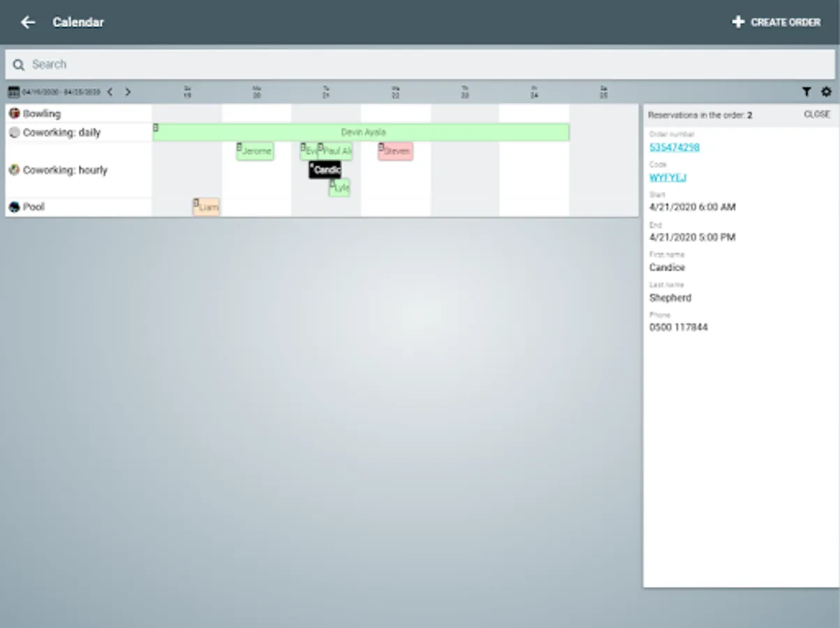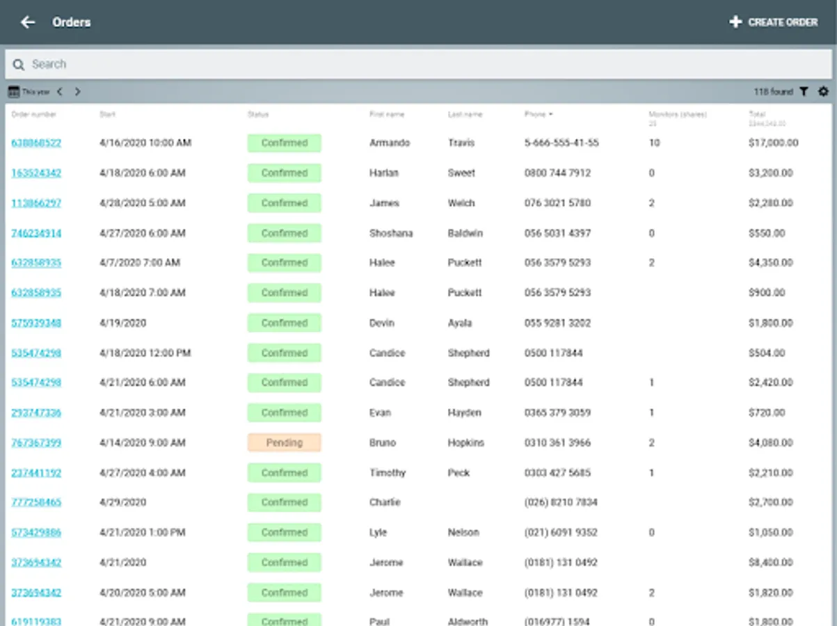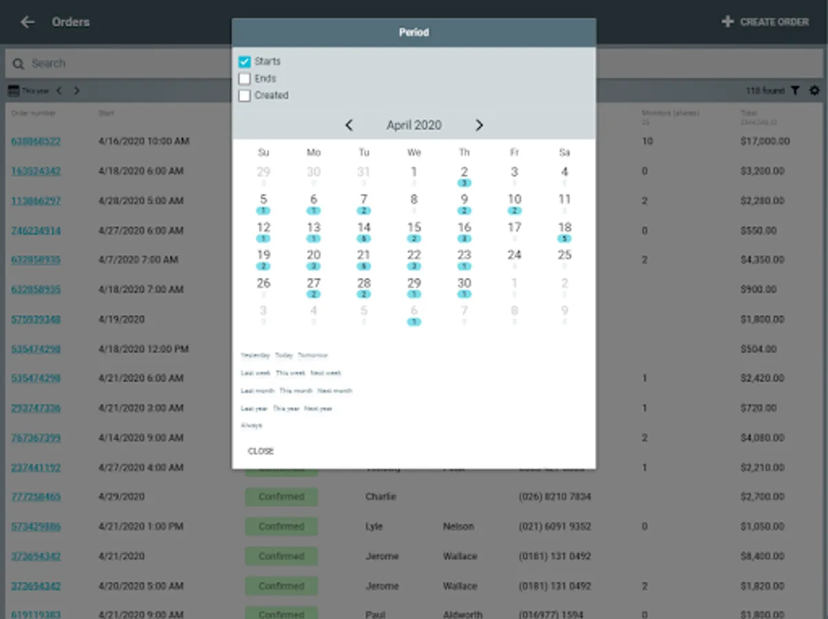 - Working with orders in the table and calendar mode.
