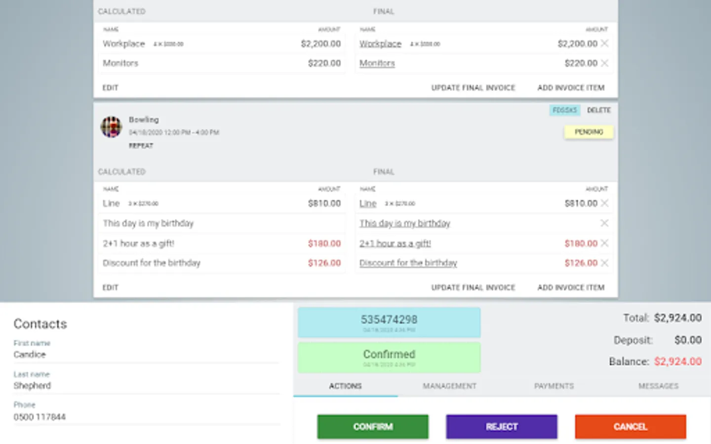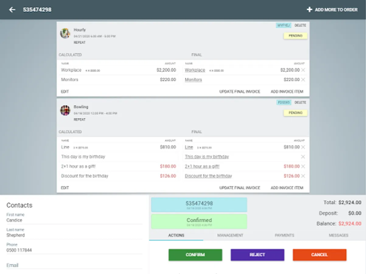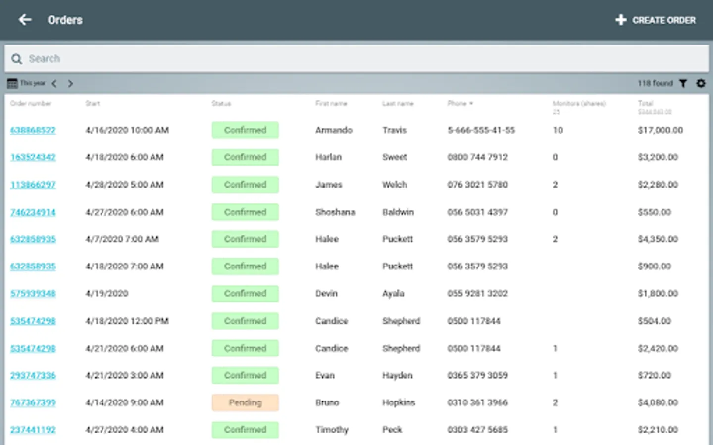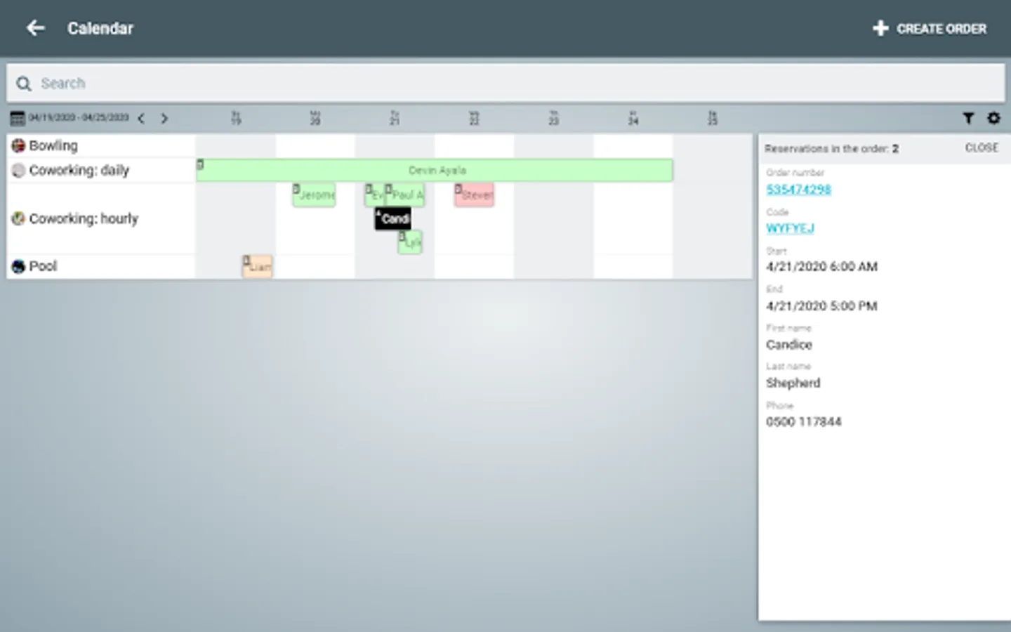 - Working with orders in the table and calendar mode.