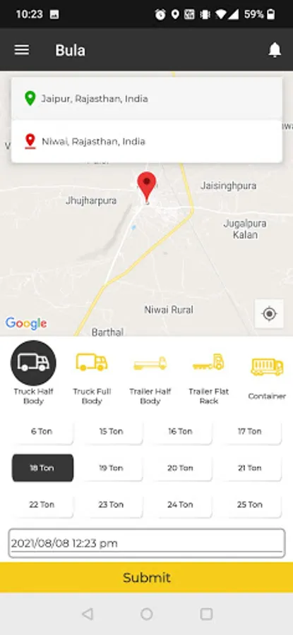 BULA is an easy, reliable and fast App for modern online transportation system. It provides transparent platform for both freight providers (User) and truck providers. This App will provide real time and advance booking, online tracking for both truck owners and freight providers. It will search the freight in advance for trucks prior to off load the current freight on their preferred routs. In this way it will help to fleet owners to minimize the idle time and avoid the rate difference from actual freight rates paid by the users.