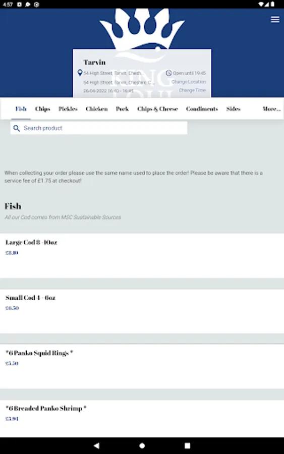 Our Fish bar in the lovely village of Tarvin, Cheshire, serves delicious succulent Pacific cod. The combination of our perfectly prepared fresh beer batter, fresh cooking oil and careful cooking methods is the reason our fish melts in your mouth. Our Cod is sustainably sourced, and line caught. Also serving breaded plaice, breaded haddock, wholetail Whitby scampi, salt & pepper squid, panko squid and mouth-watering fish burgers to name but a few.