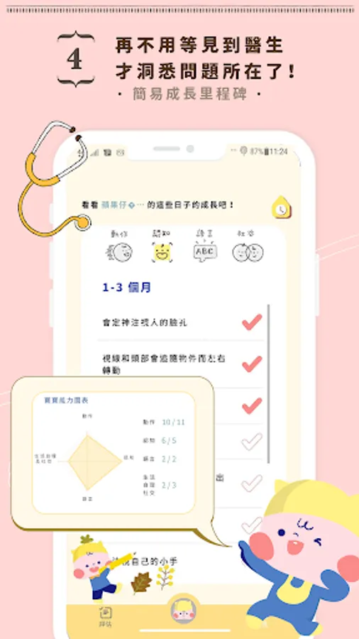 • 不只是記錄成長,長遠計劃寶寶的健康發展。妳再不用擔心孩子得不到全面發展