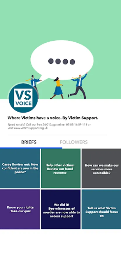 Unsure this app is genuinely Victim Support? You can call our Supportline (08 08 16 89 111) to check or find out more.