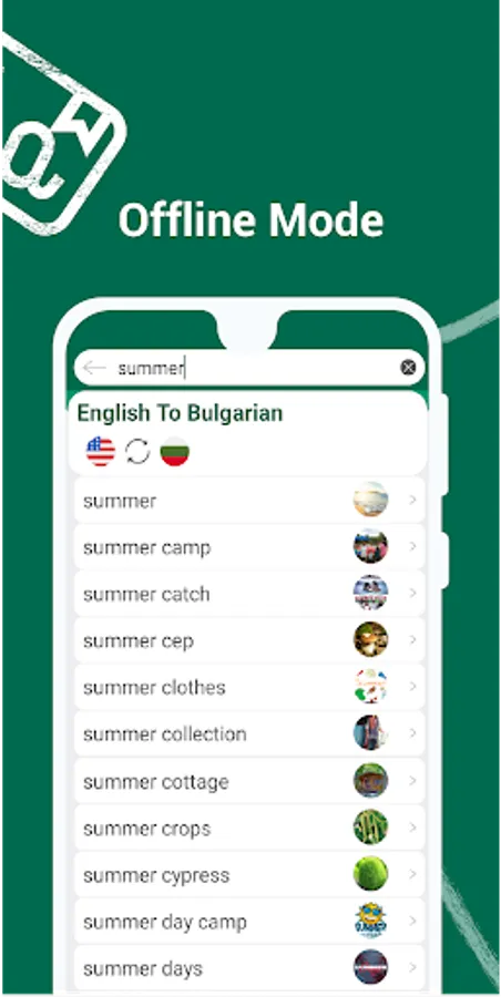 • Both offline and online translation – You can use English to Bulgarian Dictionary app even when you are not connected to the internet.