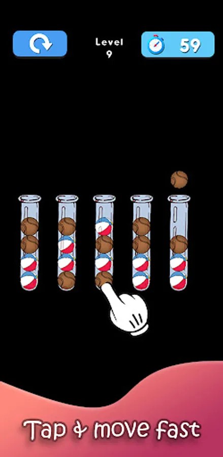 Ball sort - is a sports ball sorting game , it's fun, relaxing and a time killing game. Just tap the ball and sort them according to their colors. It is easy, engaging and mind challenging.