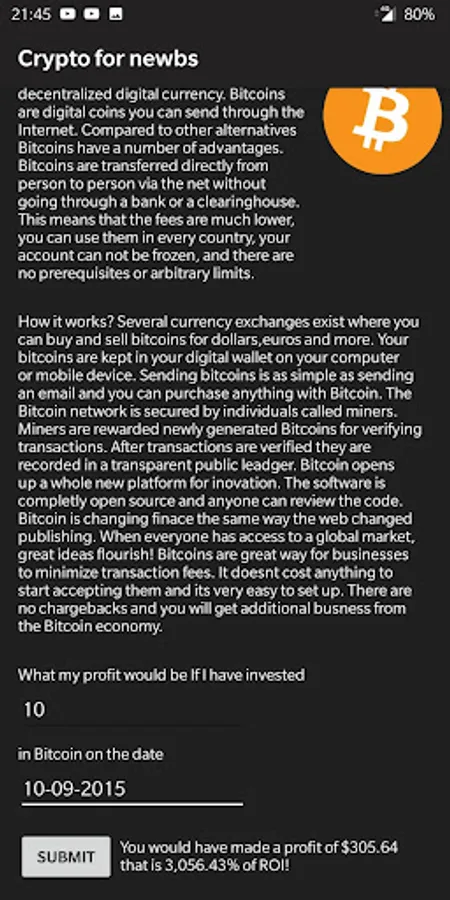 Learn about Bitcoin, Ethereum, Ripple and see how much would you profit if you invested in a certain time.