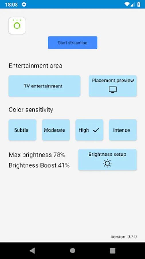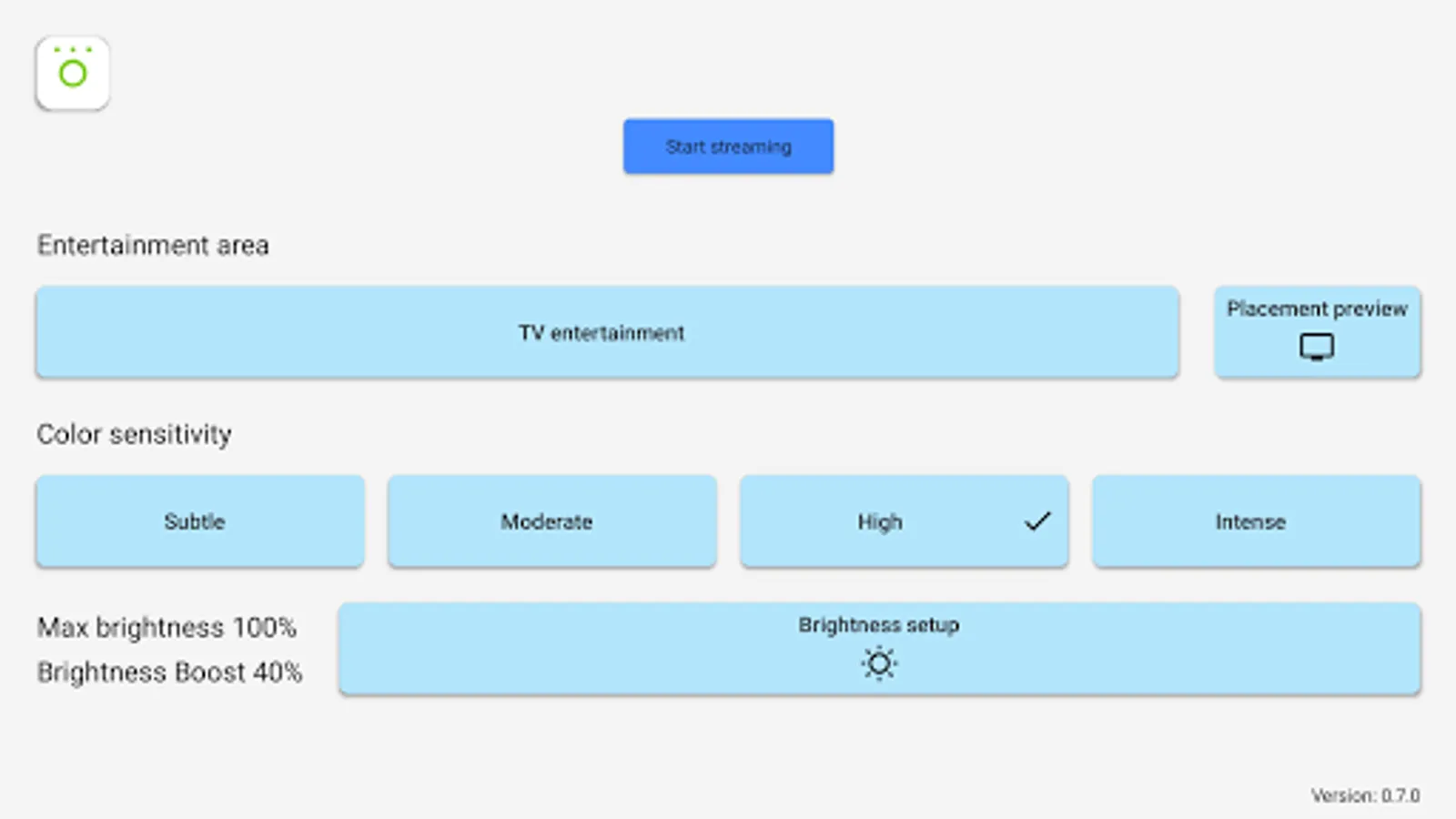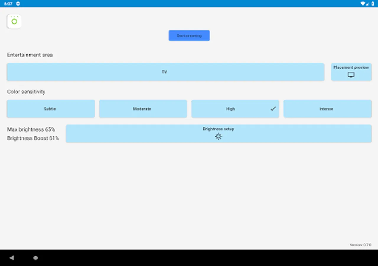 Hue Stream application uses entertainment API to stream colours to Hue lights almost instantly. This makes possible to sync screen picture with your lights with shortest possible delay. Application is easy to use. All you need is to discover Hue bridge, select your favourite entertainment group and press Start button. Hue Stream runs as a service in background while you can play Android game or watch movie, youtube...