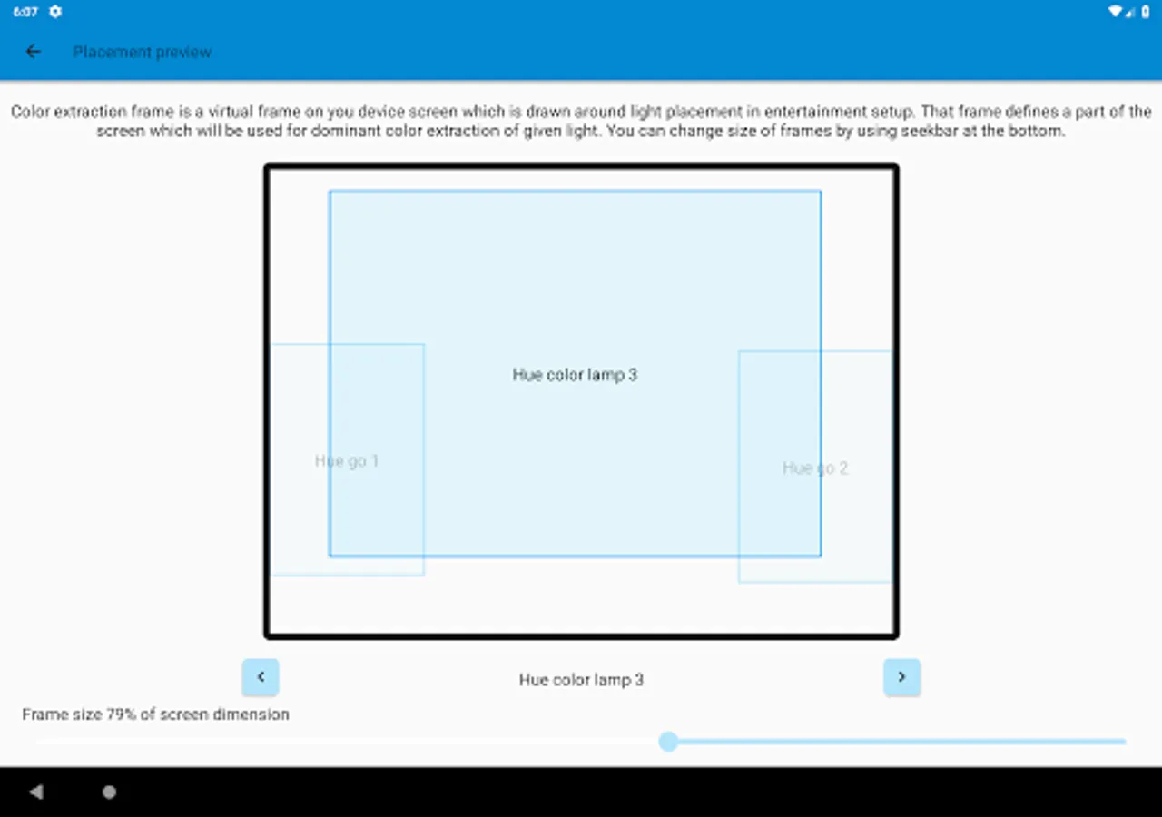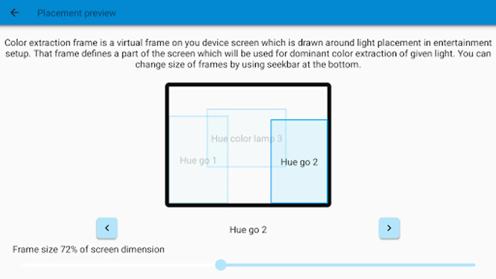 Please use official Philips Hue app to create entertainment setup. Placement of lights in entertainment setup is used to define part of the screen picture from where colour will be extracted.